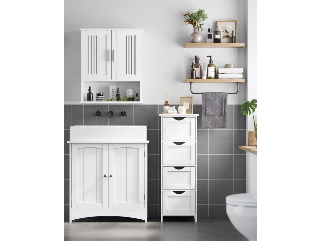 A semleges fehér szín friss és időtlen hatású, így a szekrény könnyen kombinálható különféle belső stílusokkal – a moderntől a klasszikusig. Az MDF felület sima, nedvességálló és könnyen karbantartható , így ideális fürdőszobai környezetbe.