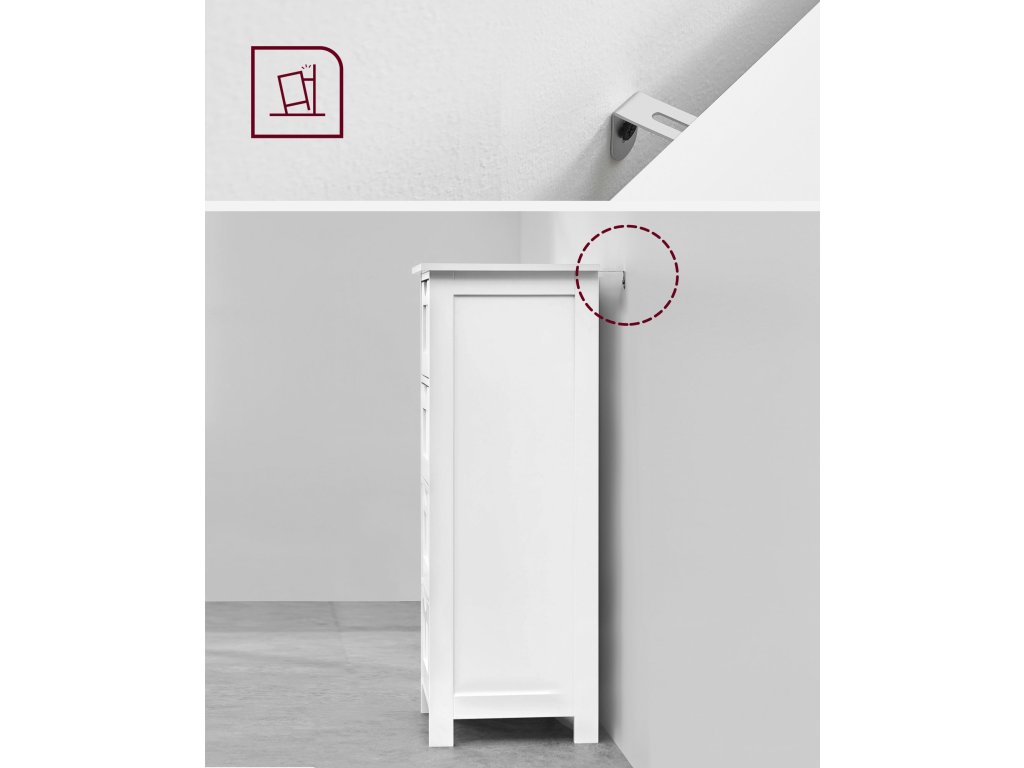 A nagyobb biztonság érdekében, különösen gyermekes háztartásokban, a szekrény a mellékelt biztonsági elem segítségével a falhoz rögzíthető .