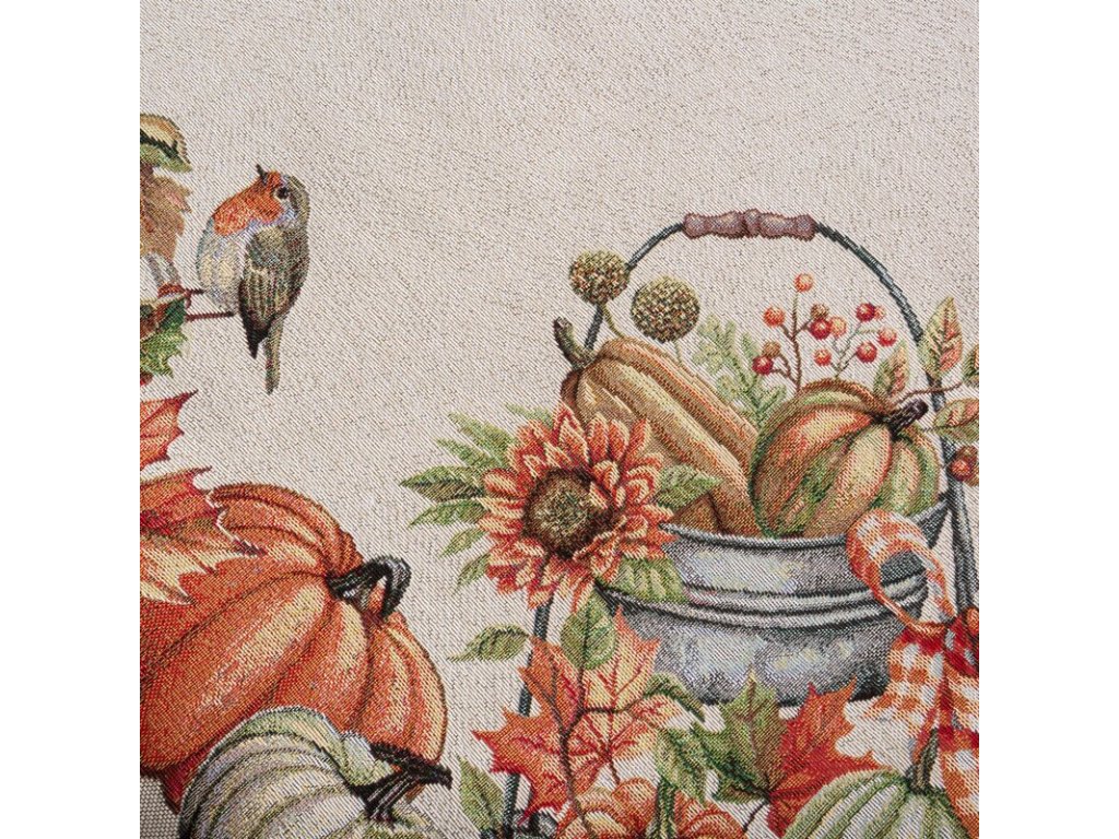 Varázsoljon meleg és otthonos hangulatot otthonába egy gobelin terítővel, melyet bájos tök és napraforgó motívum díszít.