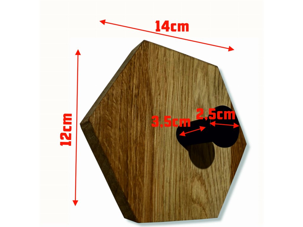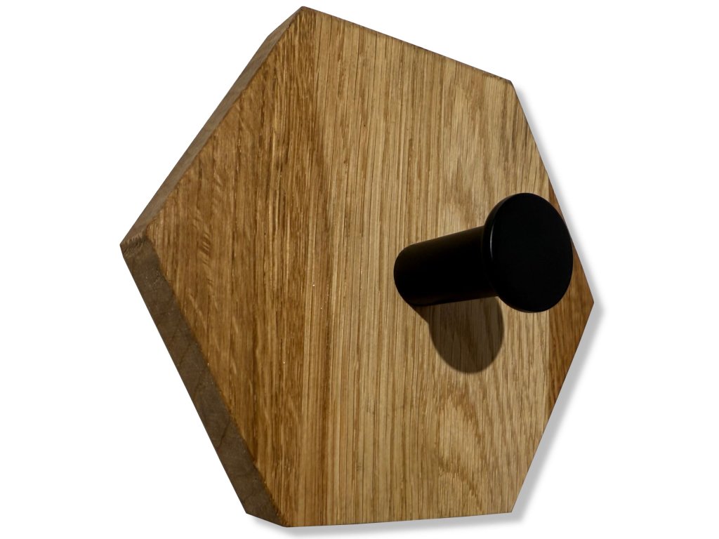 Minimalista és elegáns fali akasztó szabályos hatszög formájában, tömör tölgyfából.
