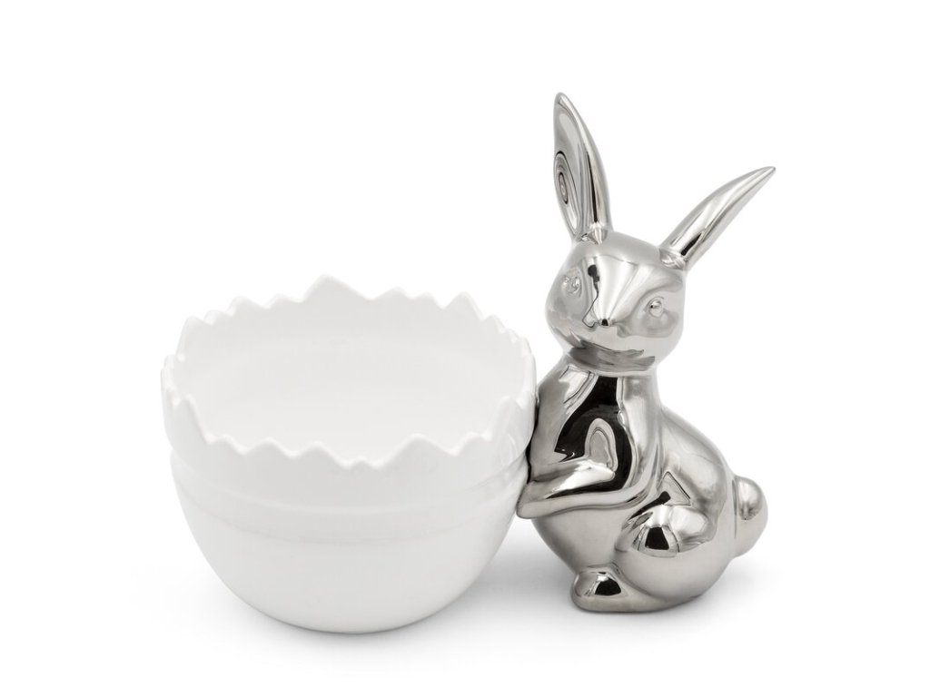 A varázsát egy aranyos nyuszi is növeli, amely a tál széléhez támaszkodik, egyedi és meleg dekorációs akcentust hozva létre.