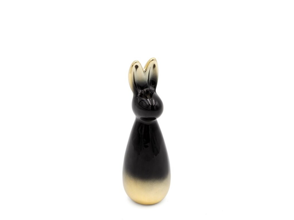 Stílusos kiegészítőt keresel, amivel egy csipetnyi tavaszt vihetsz otthonodba? Ez az elegáns húsvéti nyuszi figura prémium kerámia agyagból készült, így tartós és luxus megjelenést kölcsönöz neki. Egyedi dizájnja modern ombre dekorációt alkot magával ragadó fekete és arany színben, amely lágy átmeneteket hoz létre és rendkívül kifinomultnak tűnik.