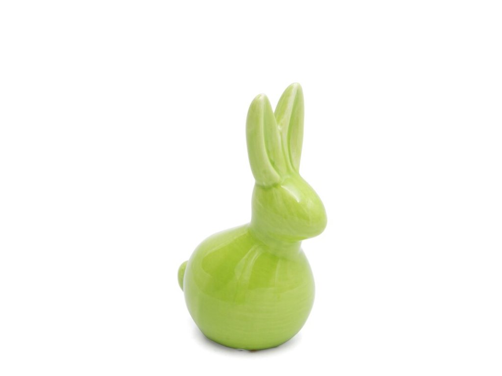 A nyuszi 100% kerámia agyagból készült, ami szilárdságot, stabilitást és minőségi megjelenést kölcsönöz neki. A fényes zöld máz finoman visszaveri a fényt, és kiemeli a dekoráció letisztult vonalait. A zöld szín a tavaszt, a természetet és az újrakezdéseket szimbolizálja, így ideális kiegészítője a húsvéti dekorációnak.