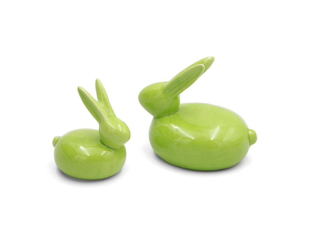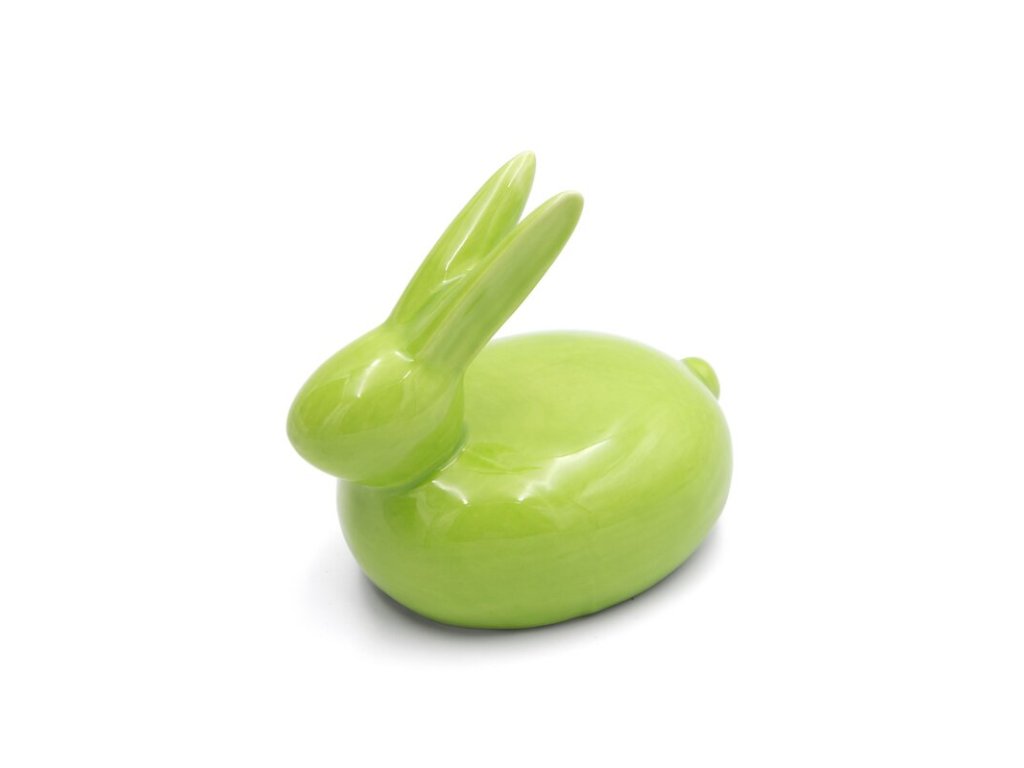 A nyuszi 100% kerámia agyagból készült, ami szilárdságot, stabilitást és minőségi megjelenést kölcsönöz neki. A fényes zöld máz finoman visszaveri a fényt, és kiemeli a dekoráció letisztult vonalait. A zöld szín a tavaszt, a természetet és az újrakezdéseket szimbolizálja, így ideális kiegészítője a húsvéti dekorációnak.