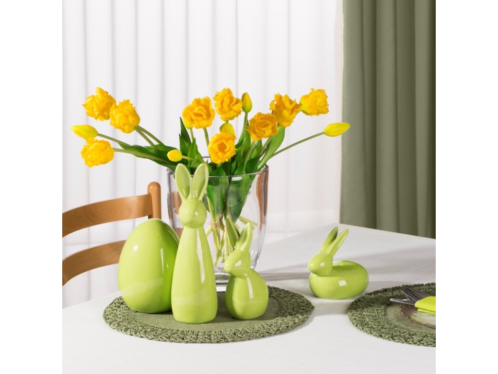 Ez az aranyos zöld húsvéti nyuszi egy ízléses dekoráció, amely a tavasz frissességét és a húsvéti ünnepi hangulatot hozza el otthonodba. Egyszerű, lekerekített formája egyszerre modern és időtlen, így klasszikus és minimalista enteriőrökbe egyaránt illik.