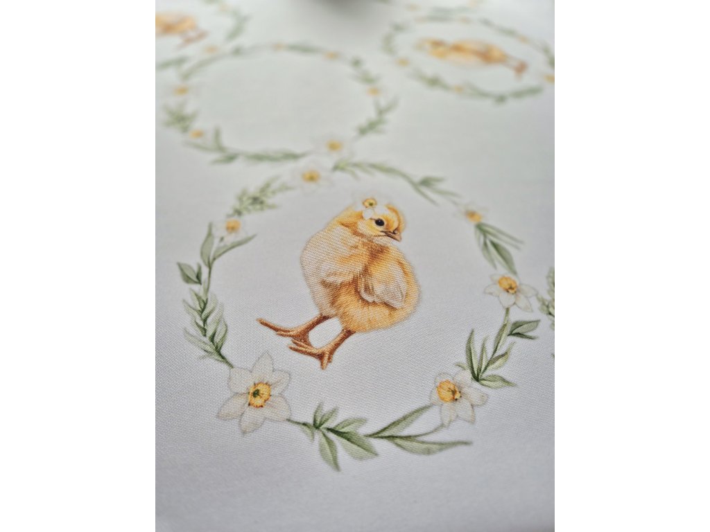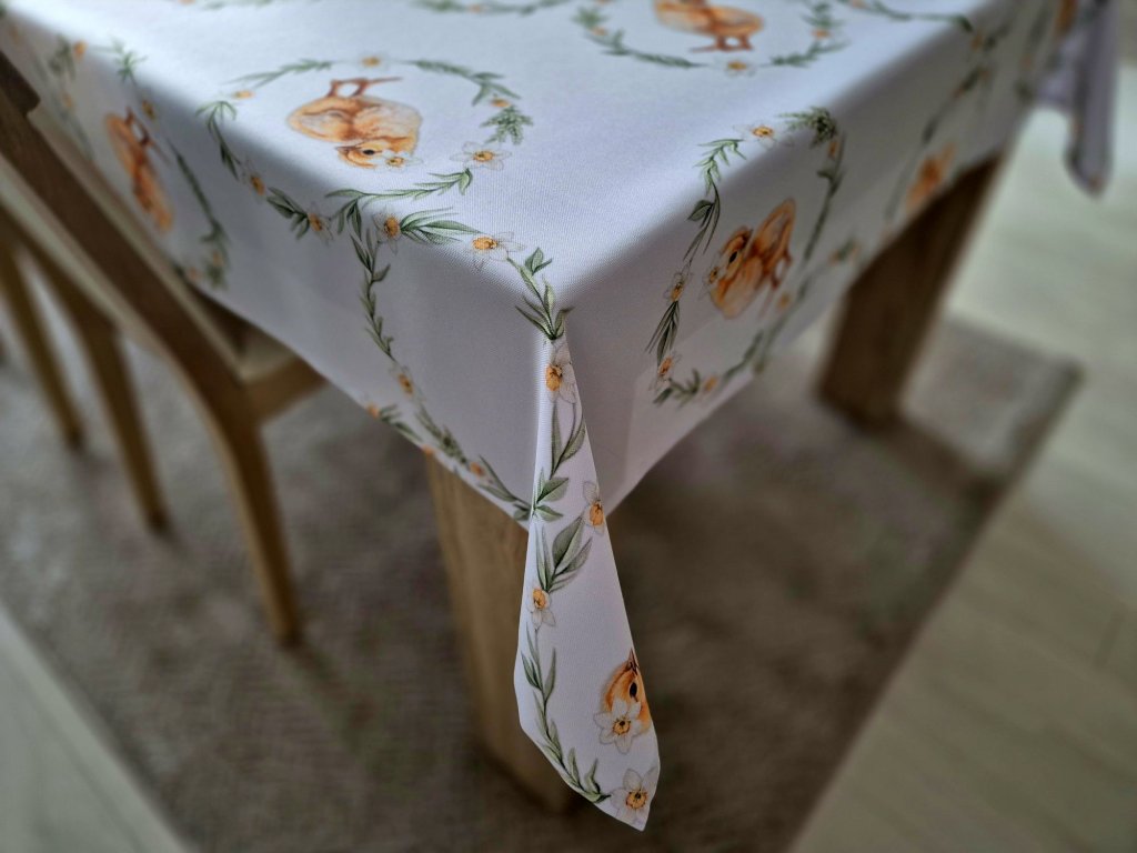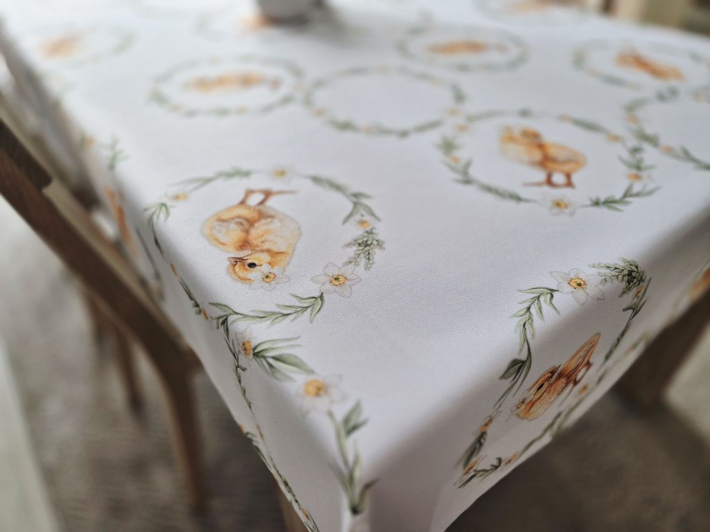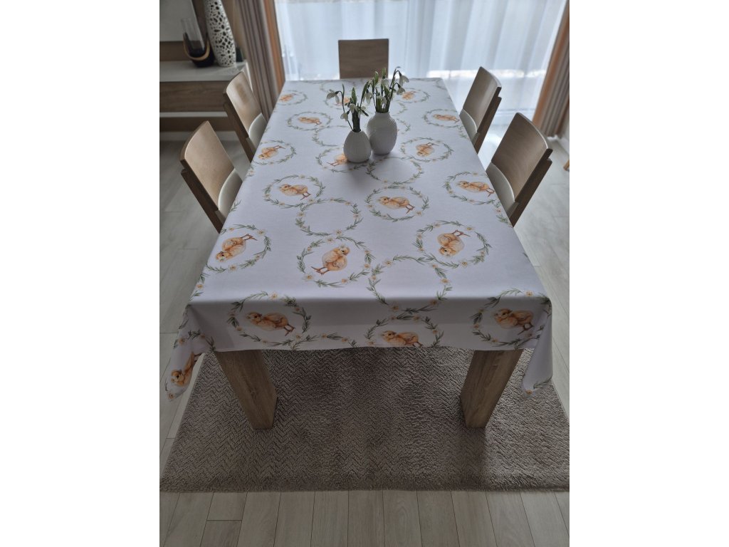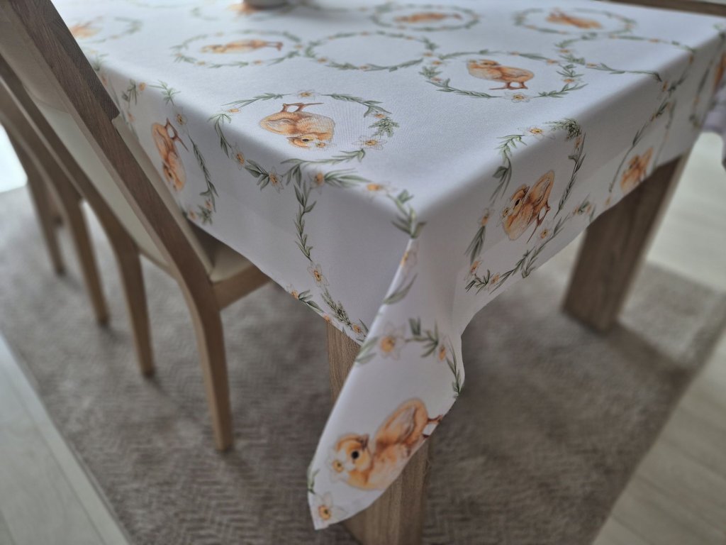 Egy húsvéti terítő mintával könnyedén varázsolhat egy átlagos étkezést ünnepi pillanattá, lágy tavaszi hangulattal. A színes minta friss akcentust ad az asztalterítéknek, miközben az asztalterítő ízléses marad, és könnyen kombinálható porcelánnal és dekorációkkal. Az esztétikai funkció mellett a praktikus oldalát is értékelni fogja: az asztalterítő 100% poliészterből készült, teflon felülettel rendelkezik, és körülbelül 220 g/m² (± 10 g) súlyának köszönhetően masszív és rendezett megjelenést kölcsönöz az asztalnak.