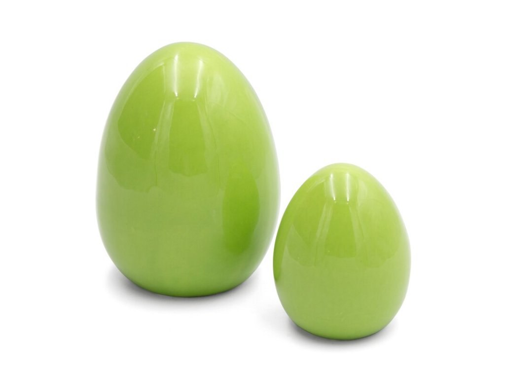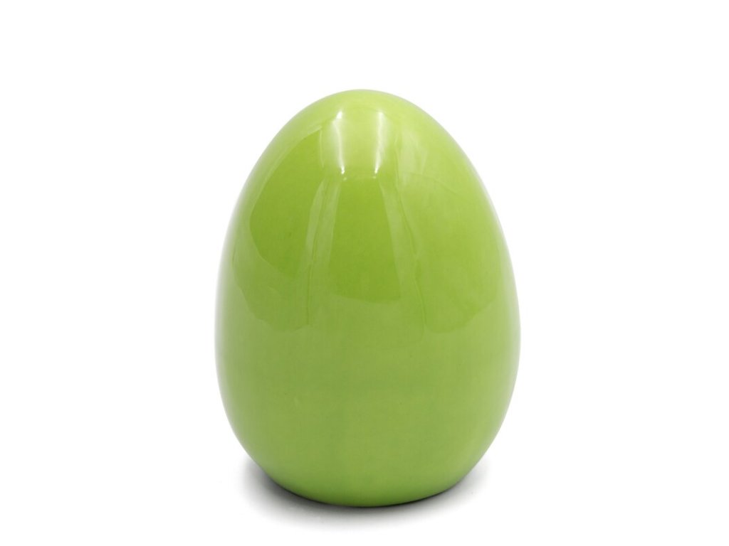 A dekoráció 100% kerámia agyagból készült, ami garantálja a szilárdságot, a stabilitást és a minőségi kidolgozást. A fényes zöld máz gyönyörűen visszaveri a fényt, és elegáns megjelenést kölcsönöz a tojásnak. A zöld szín a tavaszt, a természetet és az újrakezdéseket szimbolizálja, ezért ideális választás húsvéti dekorációhoz.