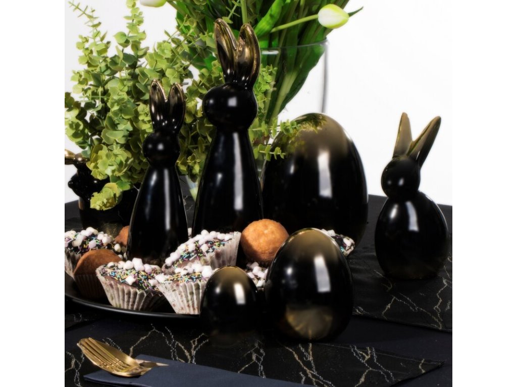 Ez az elegáns fekete és arany kerámiatojás tökéletes példája annak, hogy egy hagyományos húsvéti motívum hogyan lehet luxus. Prémium kerámiaagyagból készült, tartósságával és részletes felületkezelésével tűnik ki. Az egyedi ombre díszítés mélységet és modern megjelenést kölcsönöz a figurának, amely otthonod bármely szegletét feldobja.