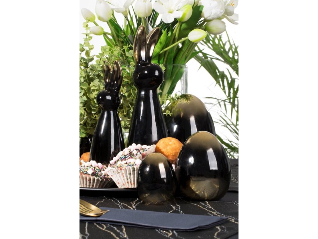 Tegye különlegessé húsvéti asztalterítékét ezzel a finom, mégis vizuálisan erőteljes tojással. A figura kiváló minőségű kerámiaagyagból készült, felületét pedig divatos fekete és arany ombre díszíti. Ez a színséma rendkívül luxushatású, és modern vizuális élményt nyújt a belső térben, ami új szintre emeli dekorációját.