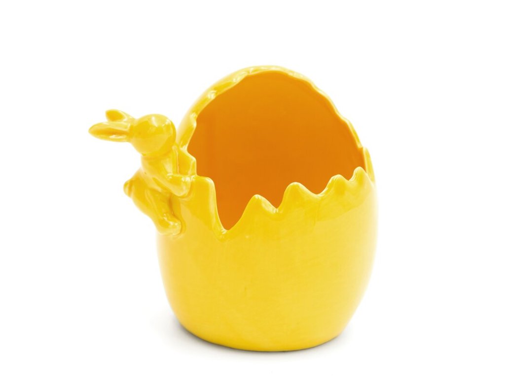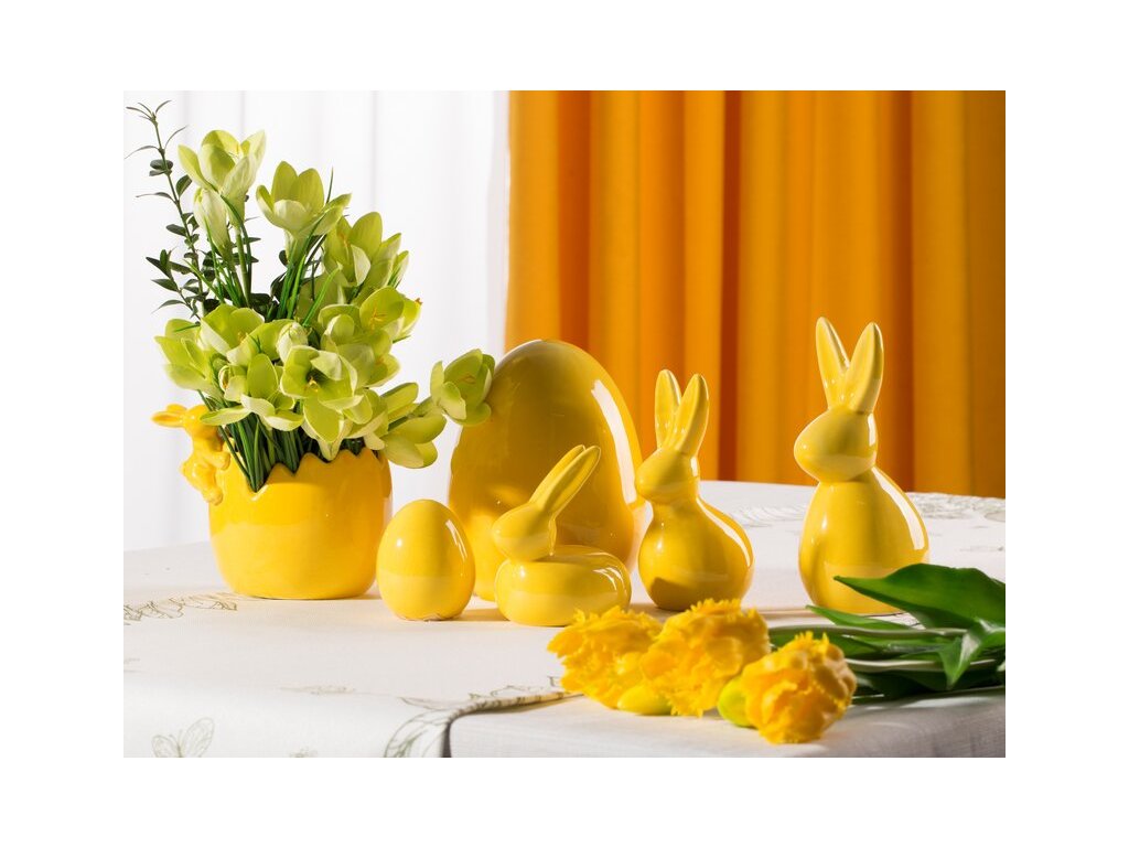 A dekoráció 100% kerámia agyagból készült, ami garantálja a szilárdságot, a stabilitást és a minőségi kidolgozást. A fényes sárga máz friss megjelenést kölcsönöz a figurának, és gyönyörűen visszaveri a fényt. A sárga szín természetesnek, harmonikusnak tűnik, és könnyen kombinálható más tavaszi és húsvéti kiegészítőkkel.