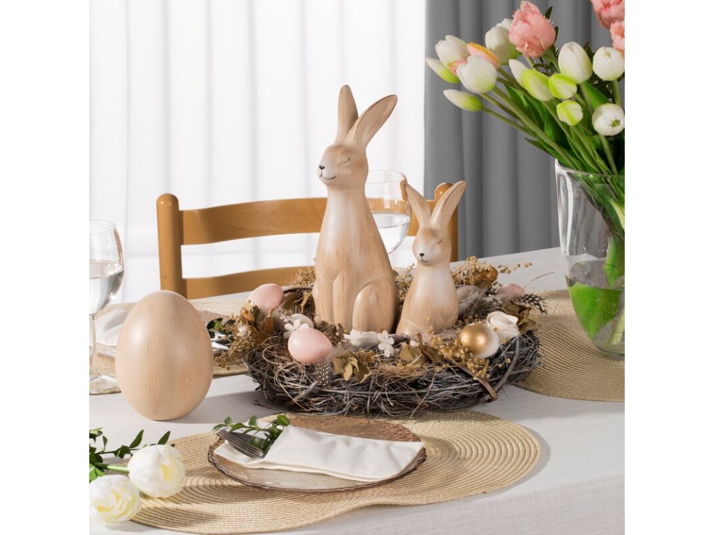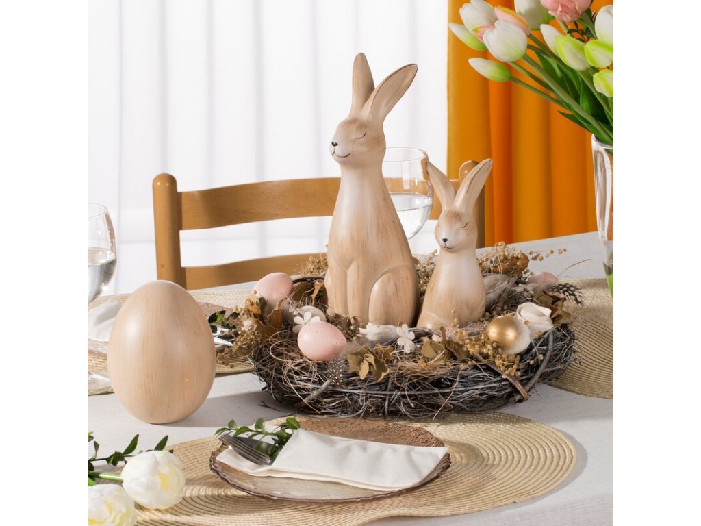 Precíz kidolgozásának és harmonikus színátmeneteinek köszönhetően a figura magára vonzza a figyelmet, és kifinomult húsvéti dísz lesz. Ideális asztaldísznek, komódnak vagy húsvéti lakberendezési tárgynak...