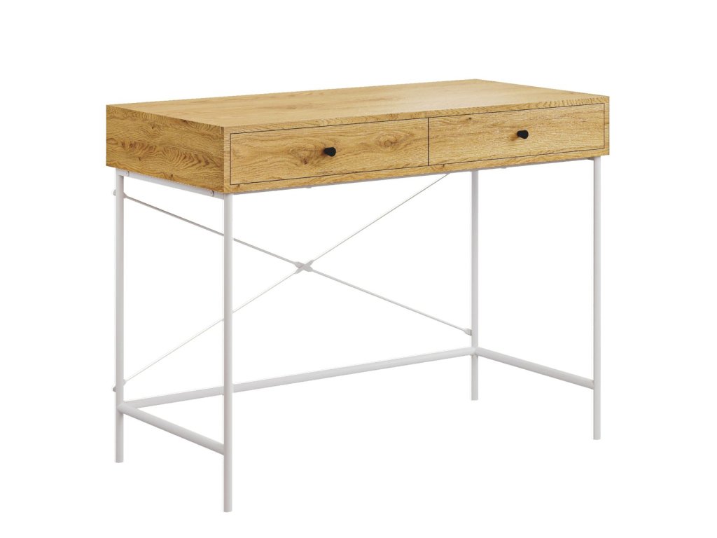 Íróasztal két fiókkal - natúr tölgy/fehér váz