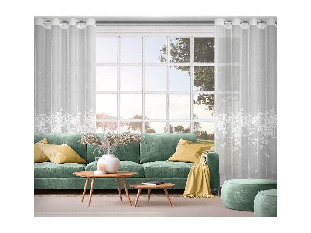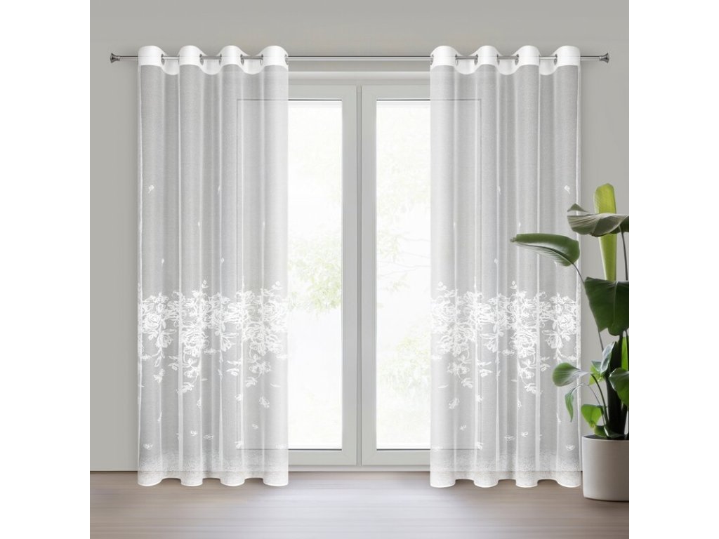 Jacquard függöny ALEXIA növényi motívummal - fehér