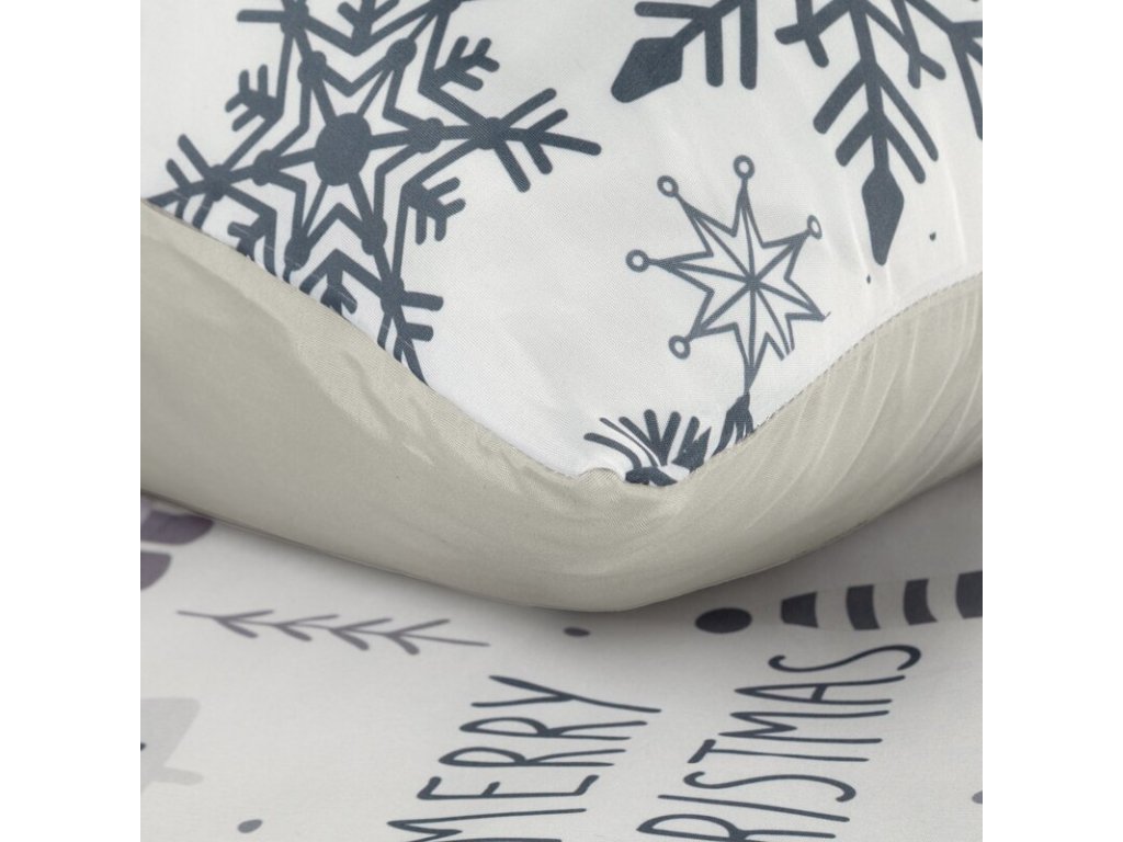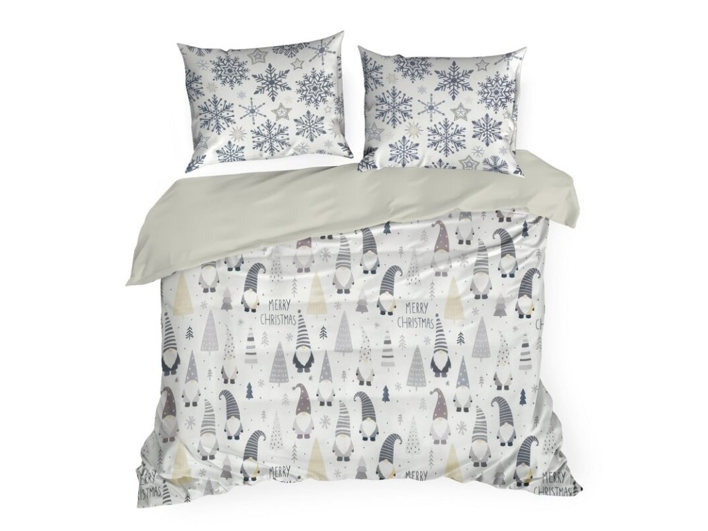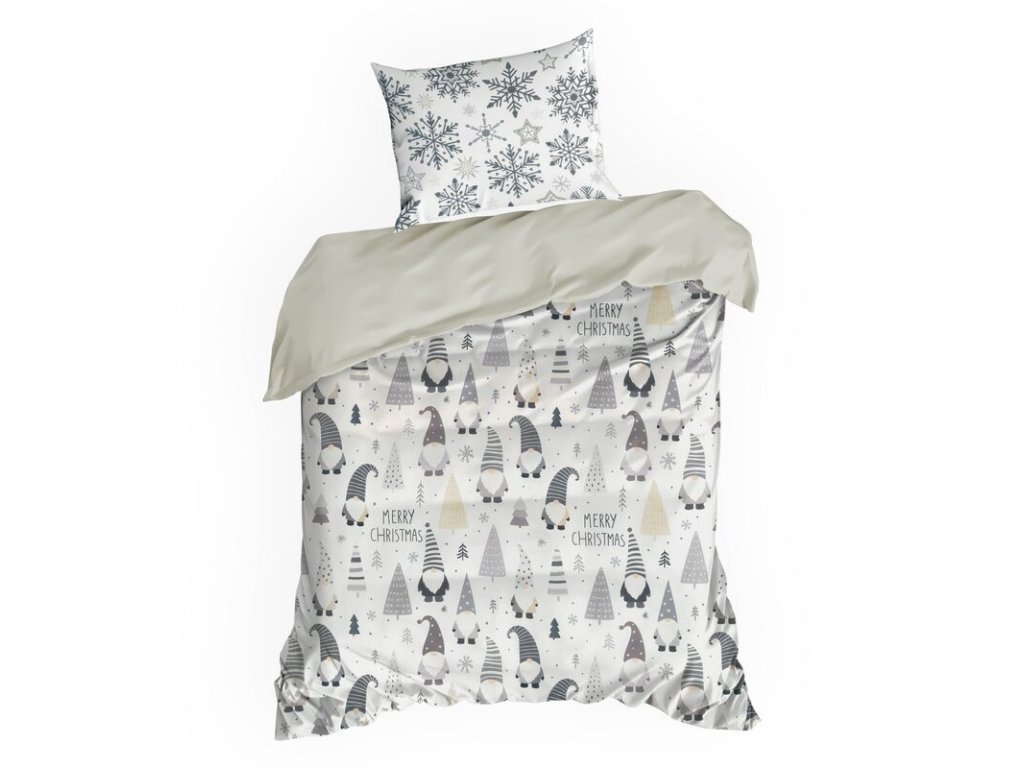 A karácsonyi manók mintája stílusossá és időtlenné teszi az ágyneműt, tökéletesen kiegészítve a téli belső teret.