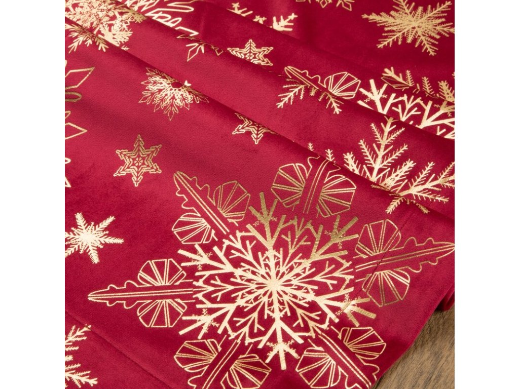 A termék kiváló minőségű bársony anyagból készült, melyre fényes aranyszínű hópelyhek mintáznak.