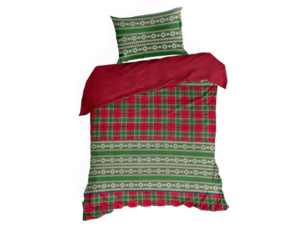 Karácsonyi flanel ágynemű AURORA zöld-piros színben