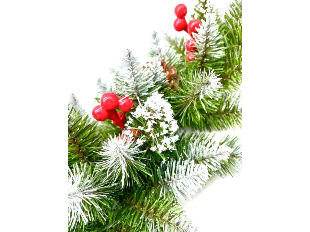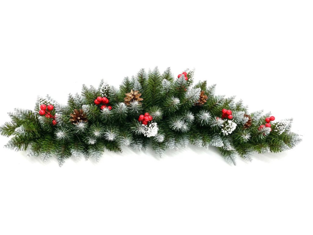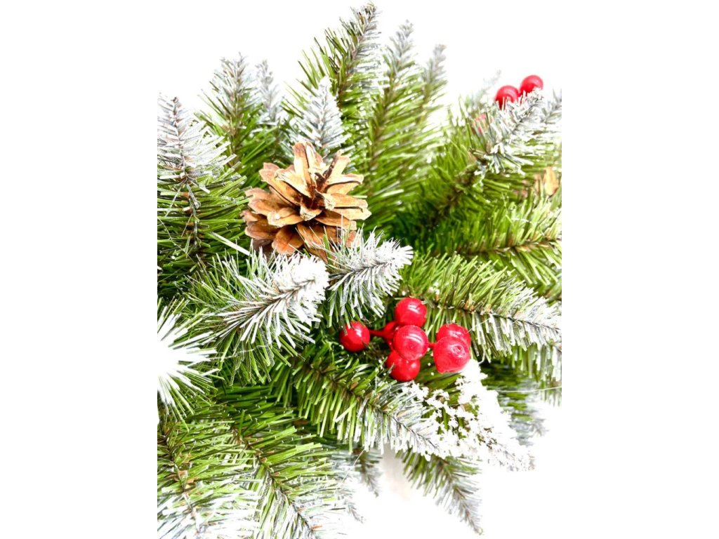A fehér hóval borított gallyvégű karácsonyi füzért egyszerűen fenyőtobozok és berkenye díszítik. Díszítheted saját fantáziád szerint, vagy egyszerűen hagyhatod.