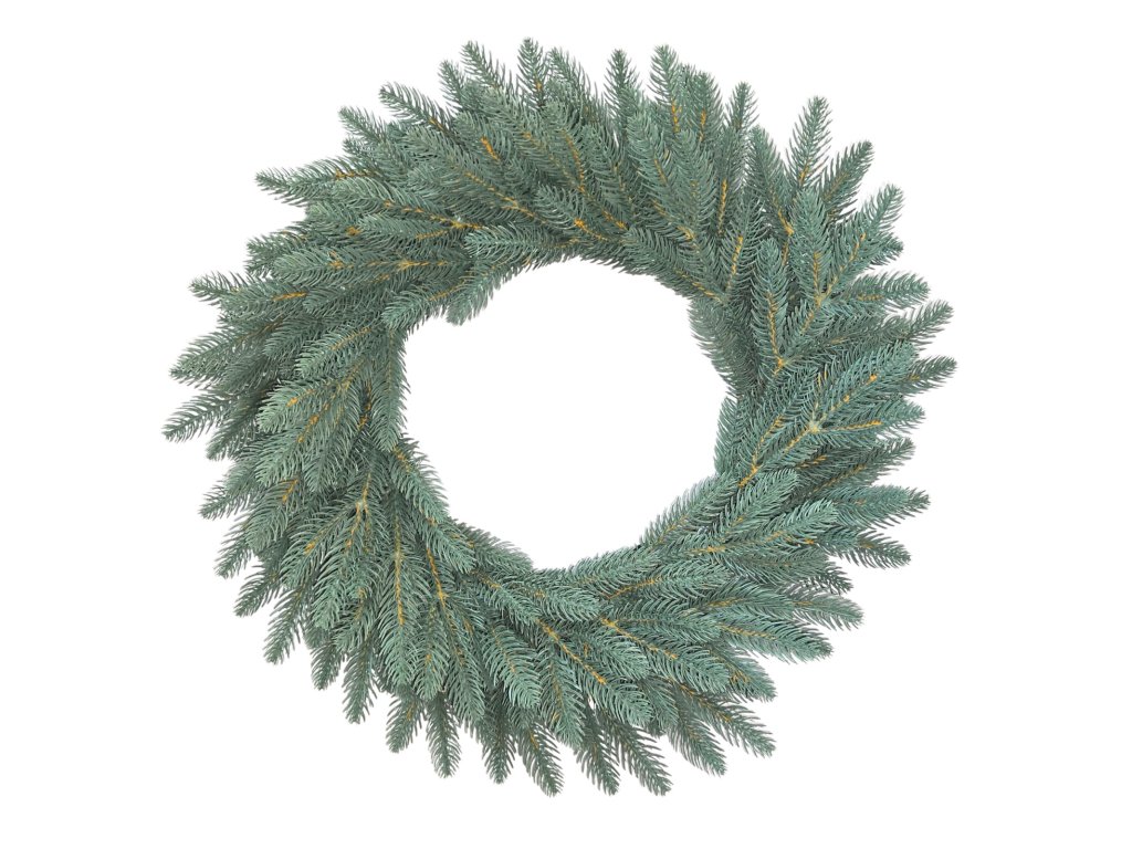 Minden egyes ágat gondosan formáztak, hogy élethűnek tűnjön – sűrű, rugalmas és realisztikus. A koszorú feltűnő hűvös, ezüstös-zöld árnyalatával , amely egy téli erdőben dér borította tűlevelű fára emlékeztet. Az eredmény egy olyan dekoráció, amely otthonosságot, eleganciát és ünnepi harmóniát visz a terébe.