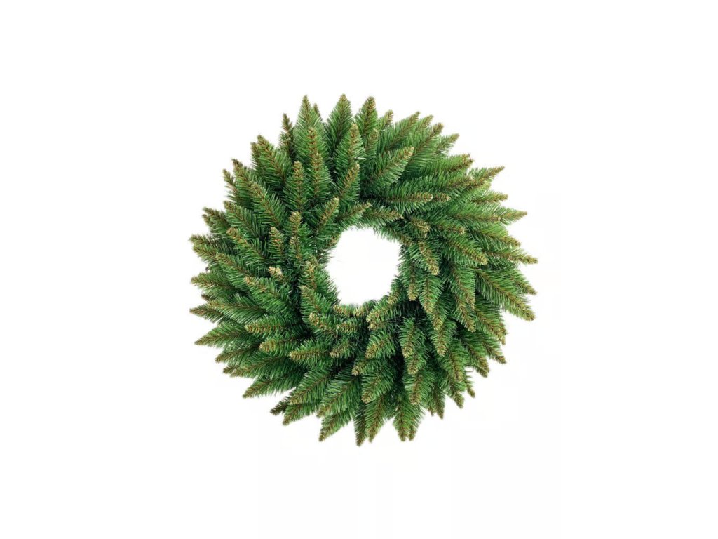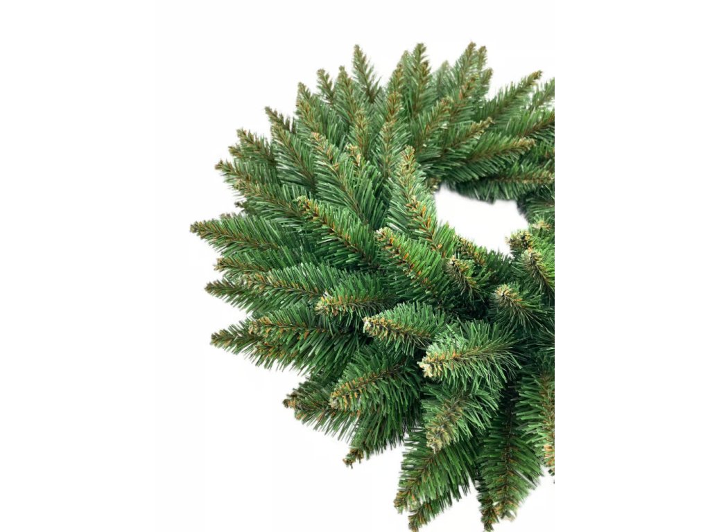 A zöld gallyakkal díszített karácsonyi koszorú egyszerű, mindenféle dekoráció nélkül