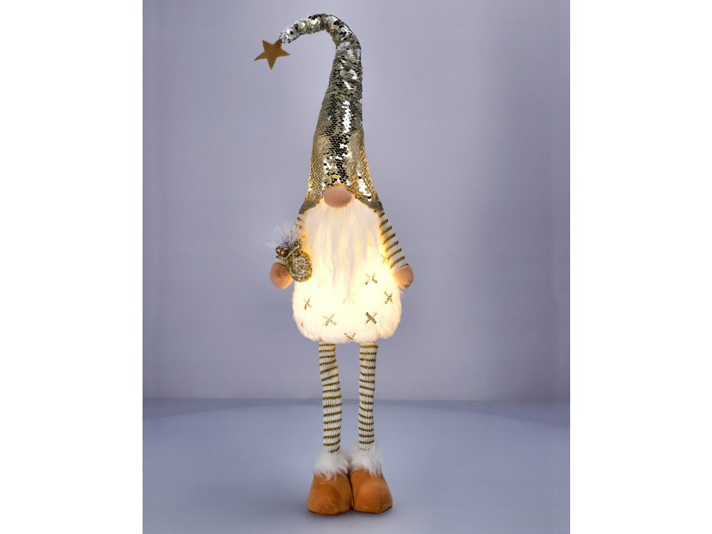 A gyönyörűen csillogó arany színű LED-es háttérvilágítású karácsonyi manó ideális illatos karácsonyfának, kandallónak vagy polcnak otthonában, nem csak a karácsonyi szezonban.