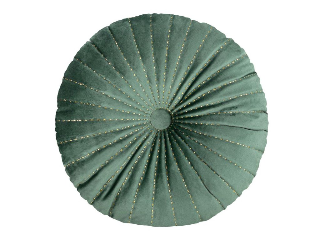 Kerek Bársony díszpárna VELVET aranyszállal varrott sötét menta színben