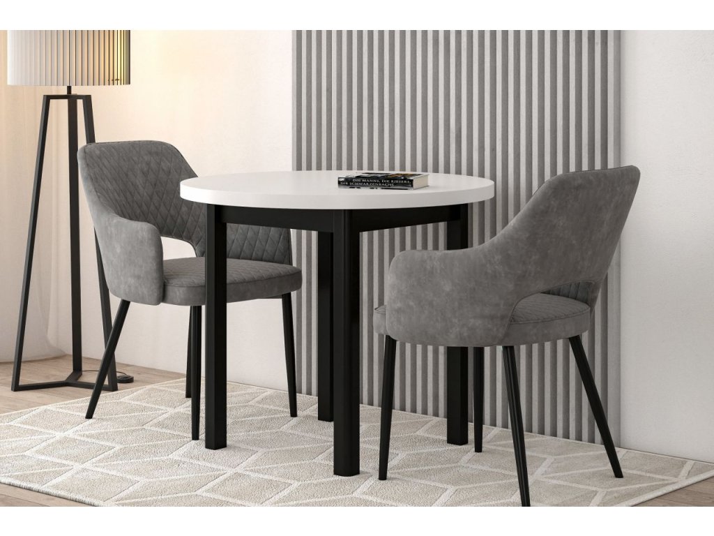 Ez a modern, kerek étkezőasztal időtlen kombinációjában tiszta fehér asztallappal és fekete lábakkal tökéletes megoldás a minimalista, skandináv vagy ipari stílus kedvelőinek. A kontrasztos színek kombinációja eleganciát, frissességet és vizuális könnyedséget kölcsönöz a belső térnek.