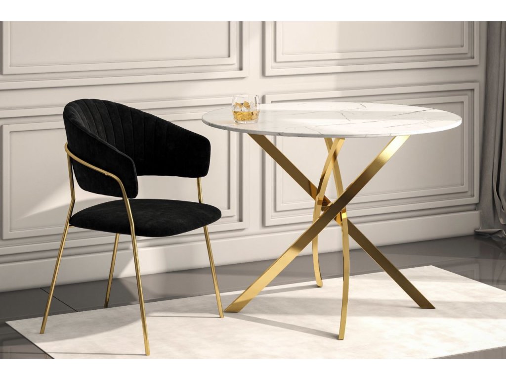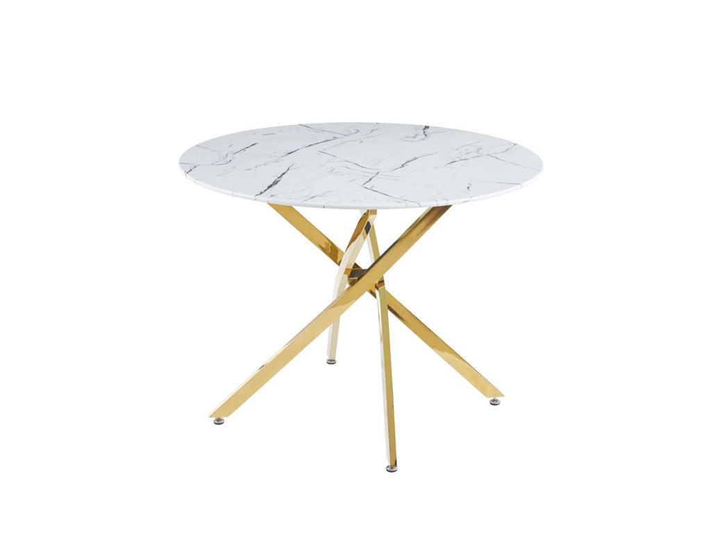 Kerek étkezőasztal 100 cm – Fehér márvány / Arany lábak