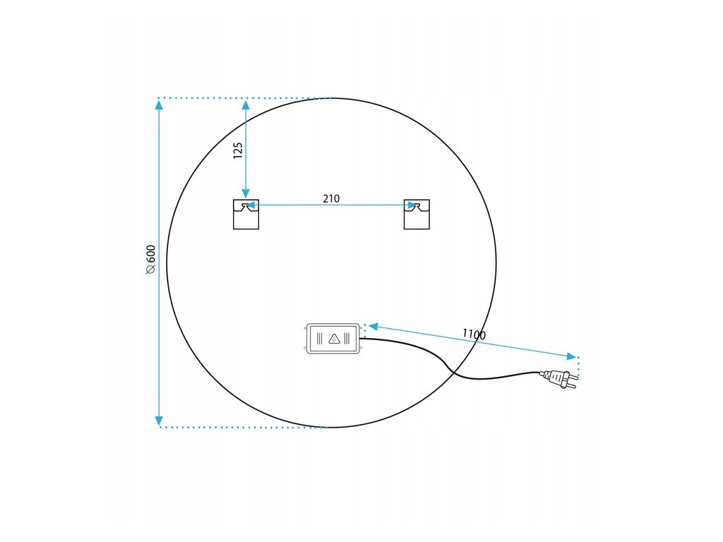 A tükörkeretben található érintőkapcsoló kéken világít, ha a funkció be van kapcsolva. A csomag tartalmaz egy fehér tápkábelt is, melynek hossza 110 cm.