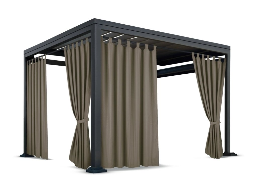 A kerti függöny vízálló réteggel ellátott poliészter anyagból készült.