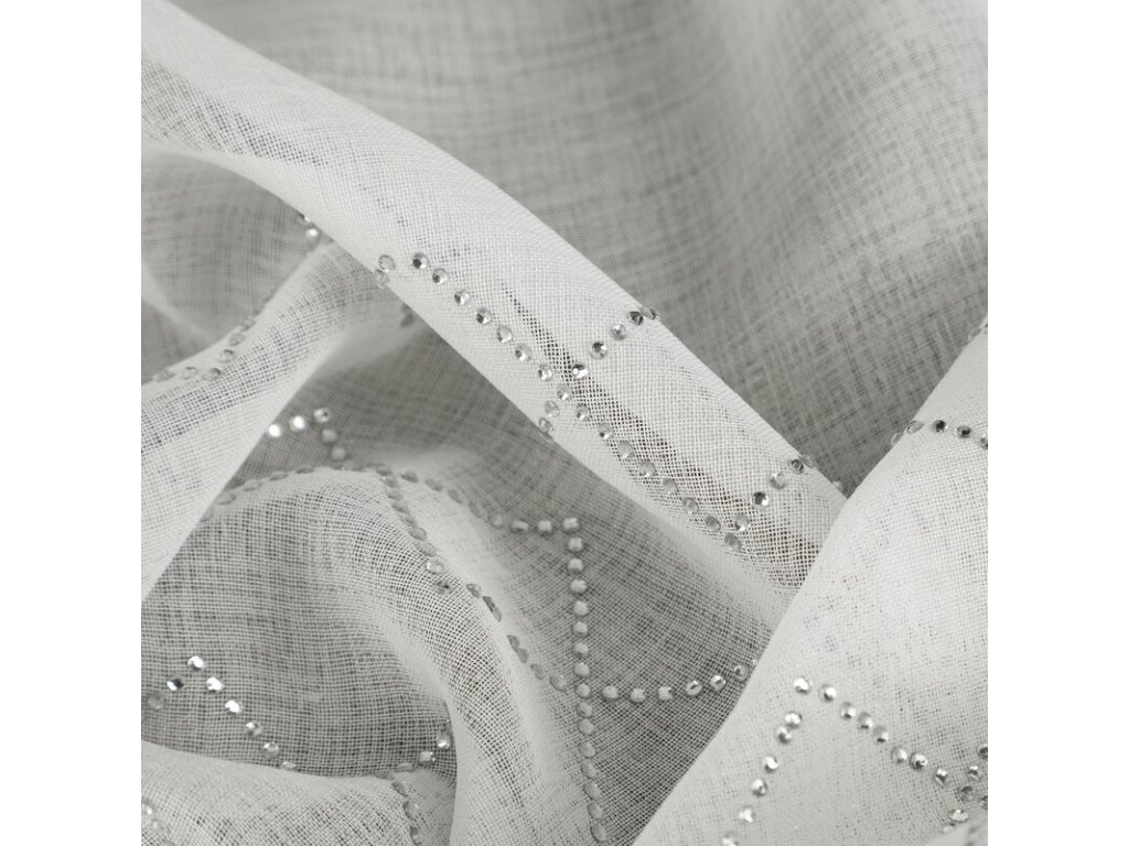 Kész etamin függöny KLEO fényes kristályokkal díszítve 350x140cm fehér