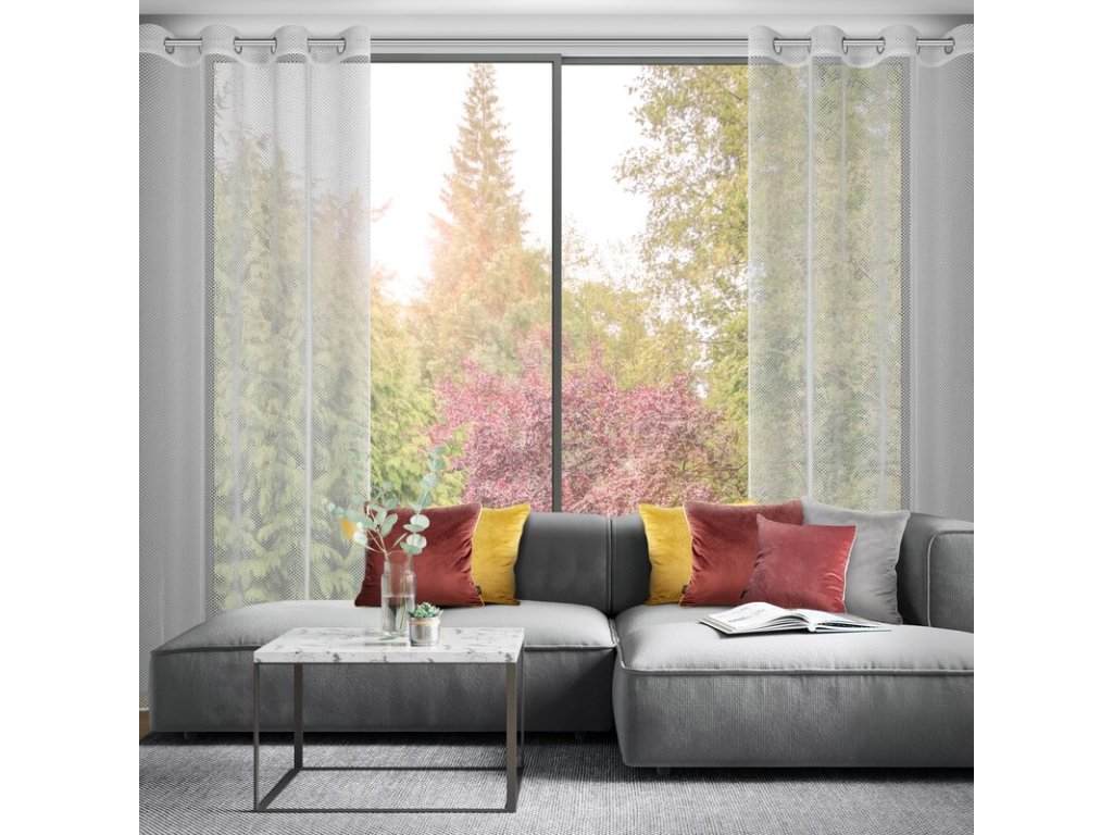 Ezzel a függönnyel könnyedén és gyorsan bármely helyiséget fény- és pozitív energiával teli hellyé varázsolhat. A függöny 100% poliészterből készült, exkluzív hálós szerkezettel, mely egyedi megjelenést kölcsönöz a függönynek, ugyanakkor biztosítja a tartós minőséget és a kopásállóságot.