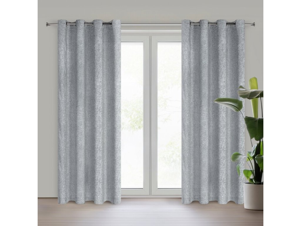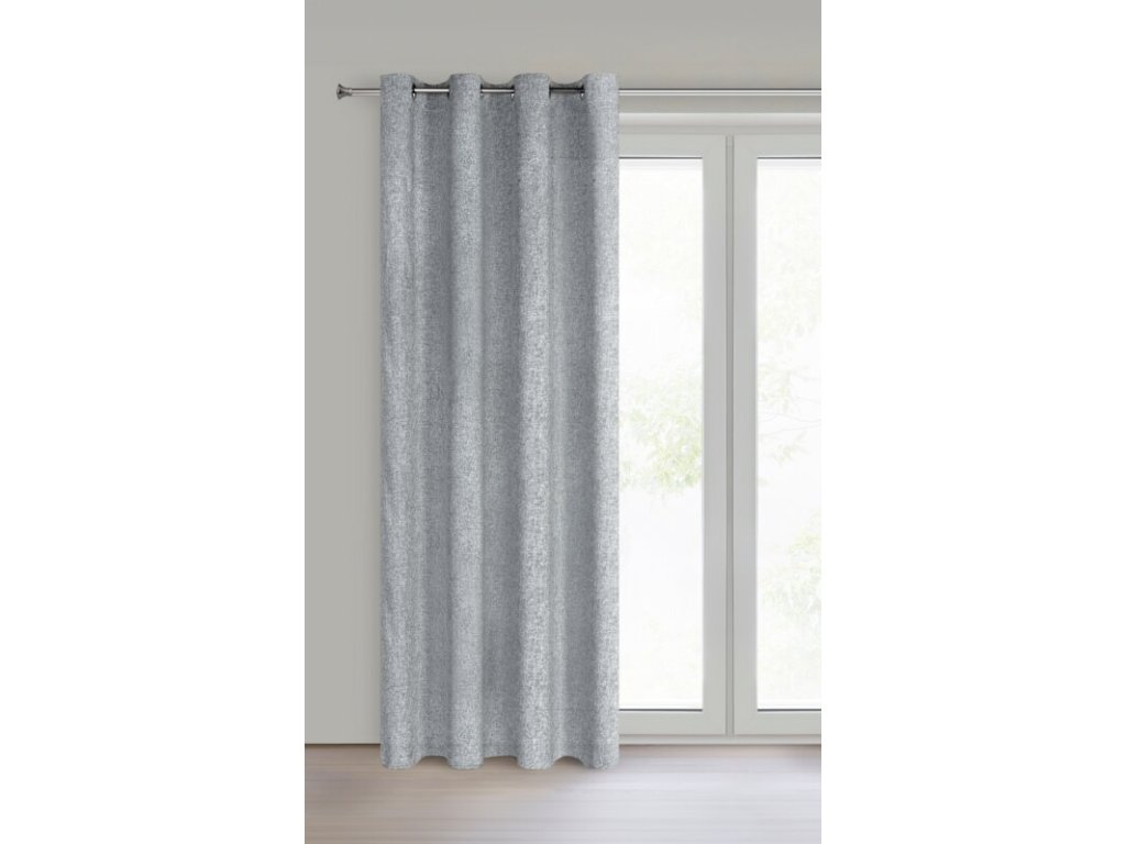 Az acélszínű függöny modern és időtlen megjelenésű, könnyen kombinálható különféle belső stílusokkal, és elegáns megjelenést kölcsönöz a térnek. A kész dizájnnak köszönhetően egyszerűen felakaszthatja - további módosítások nélkül.