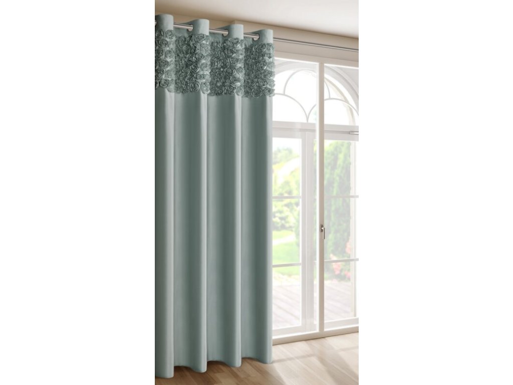 Készre varrt bársony függöny RÓZSÁK 13 menta, 140x250cm