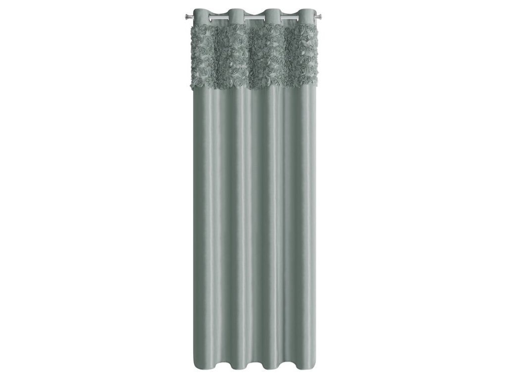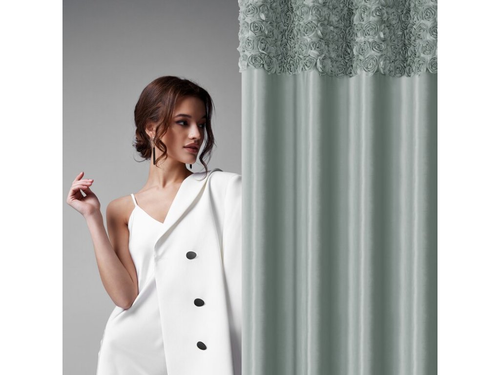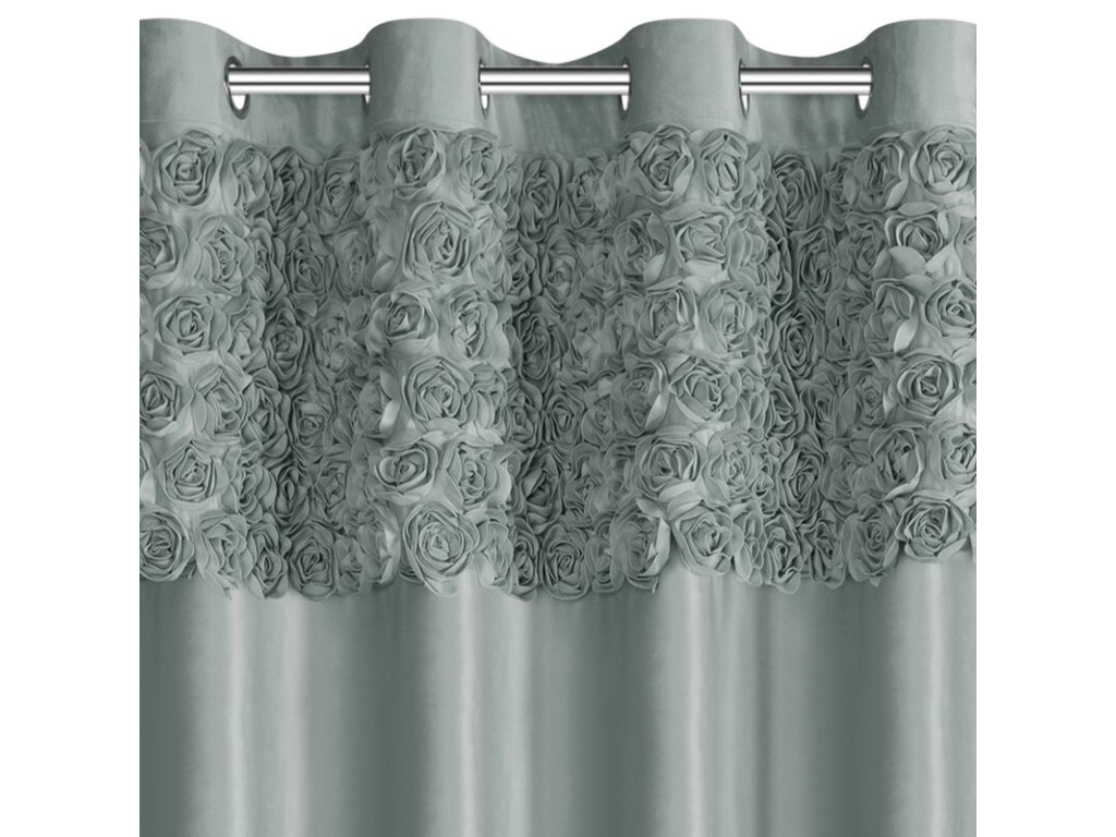 A függöny felső részét gyönyörű 3D-s szövetrózsák díszítik, ami romantikus és kivételes megjelenést kölcsönöz neki. Minden részlet precízen kidolgozott, így a függöny nemcsak praktikus elem, hanem karakteres design dekoráció is.