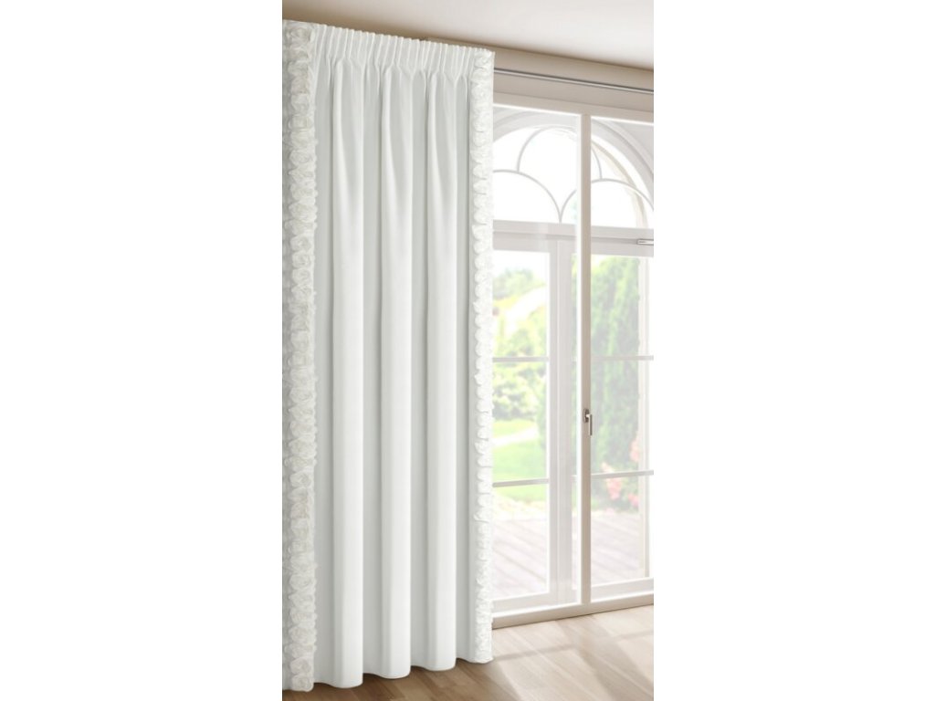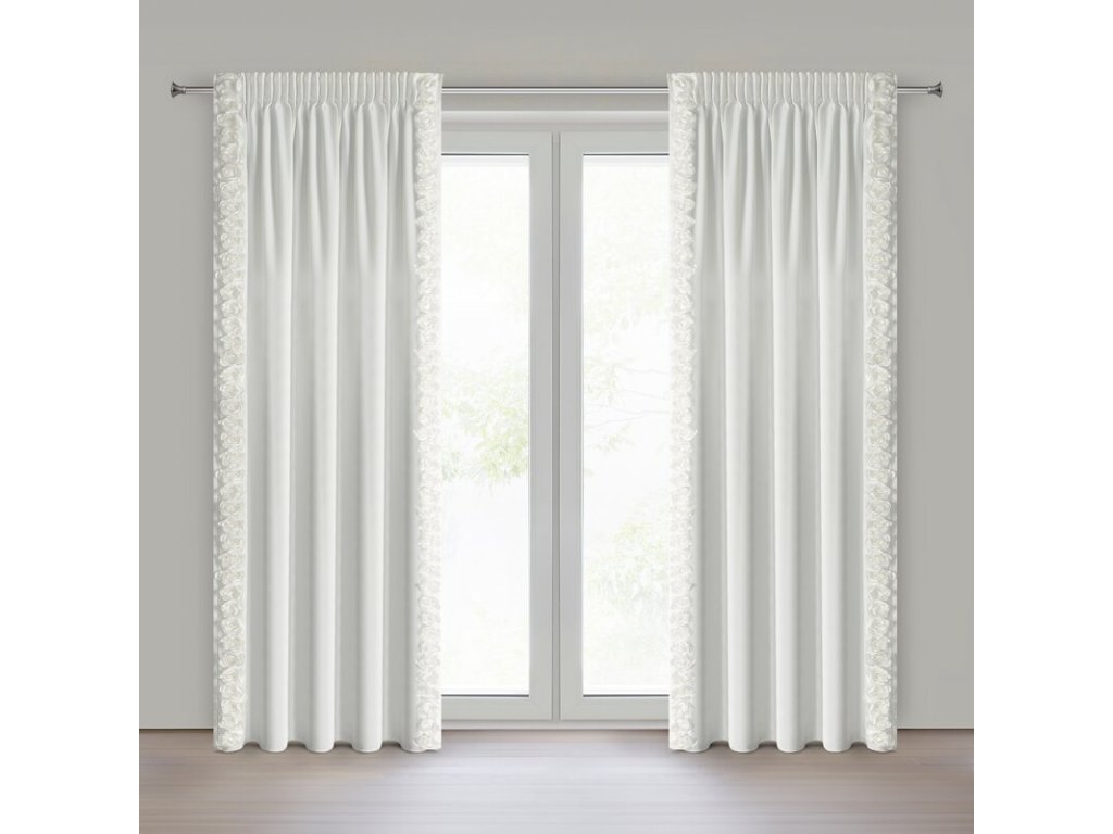 Készre varrt bársony függöny RÓZSÁK 14 krémszínű szalagon, 140x270cm