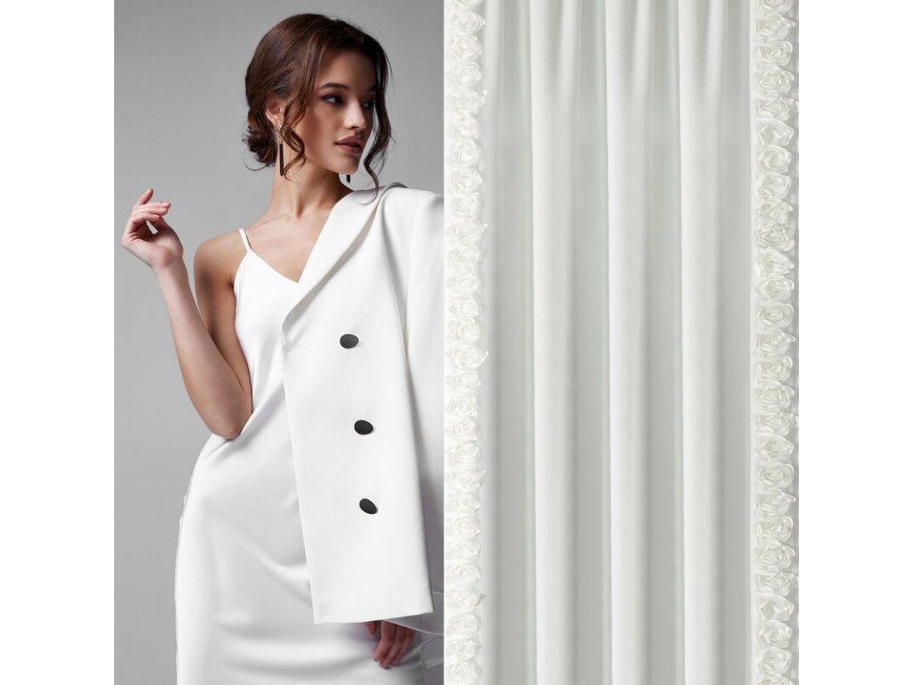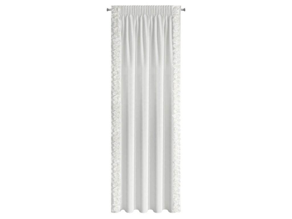 A függöny kiváló minőségű 100% poliészterből készült, amely puha, tartós és kellemes tapintású. Oldalán függőleges 3D-s szövetrózsák csíkjai díszítik, amelyek egyedi, dekoratív megjelenést kölcsönöznek neki, és bármilyen térbe dizájnos kiegészítővé teszik.