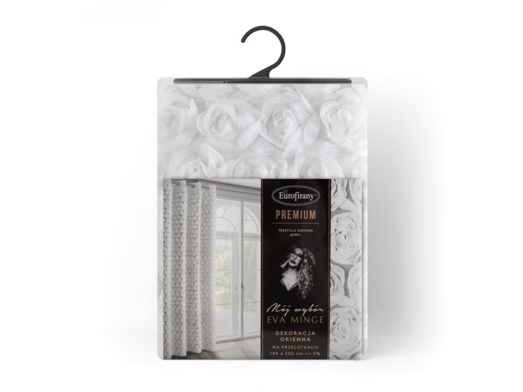 Készre varrt fehér függöny ROSES 1 kerekeken 140x250cm
