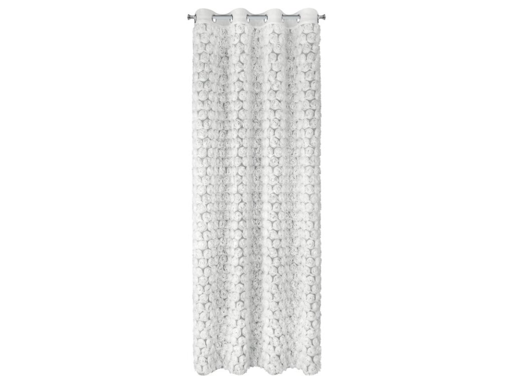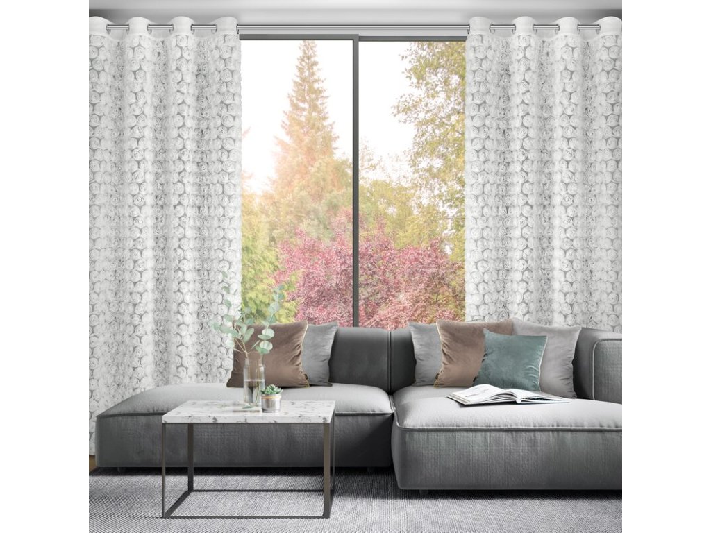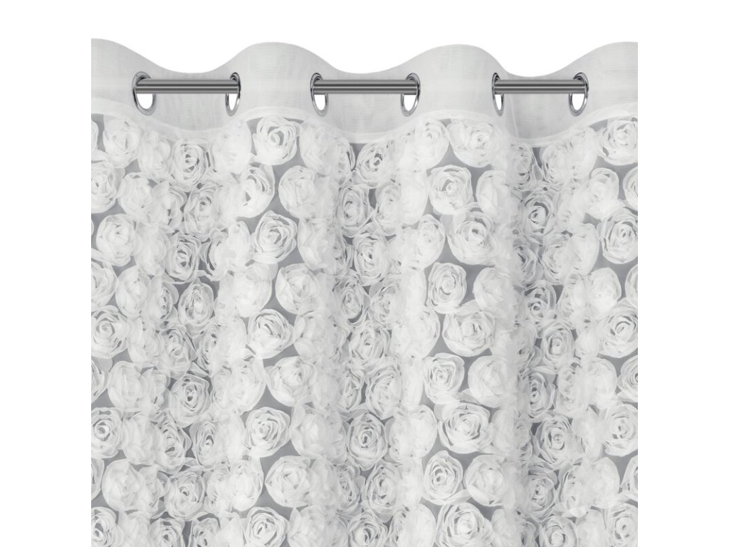 A dekoratív, háromdimenziós, 3D-s szövetrózsák egyedi megjelenést kölcsönöznek a függönynek, és egy békés, hangulatos otthon hangulatát teremtik meg a természet romantikus vonásaival .