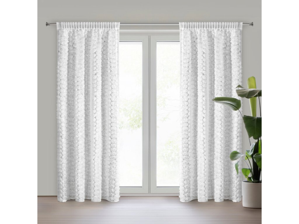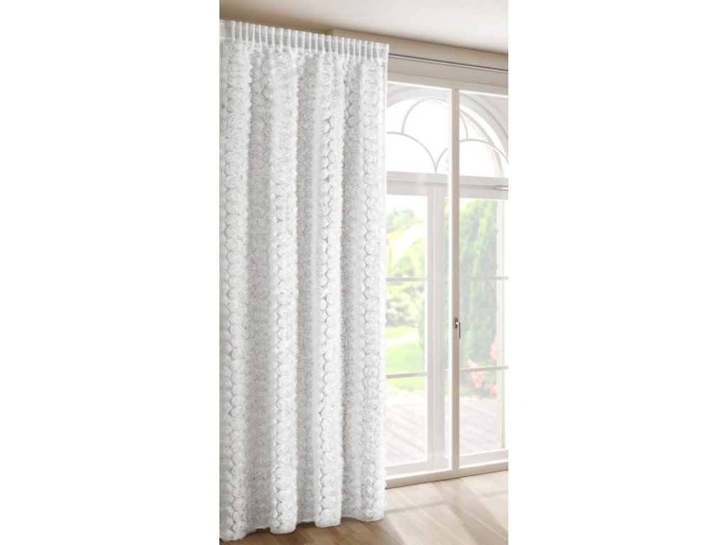 Készre varrt fehér függöny RÓZSÁK 1 szalagon 140x270cm