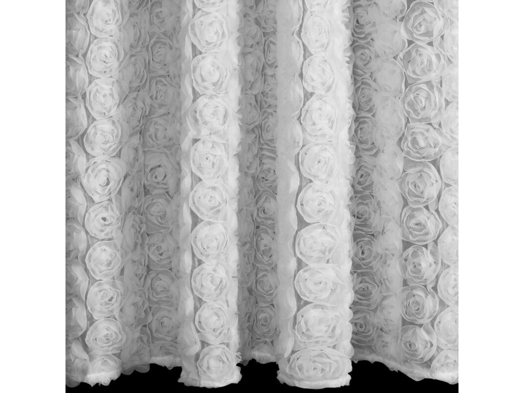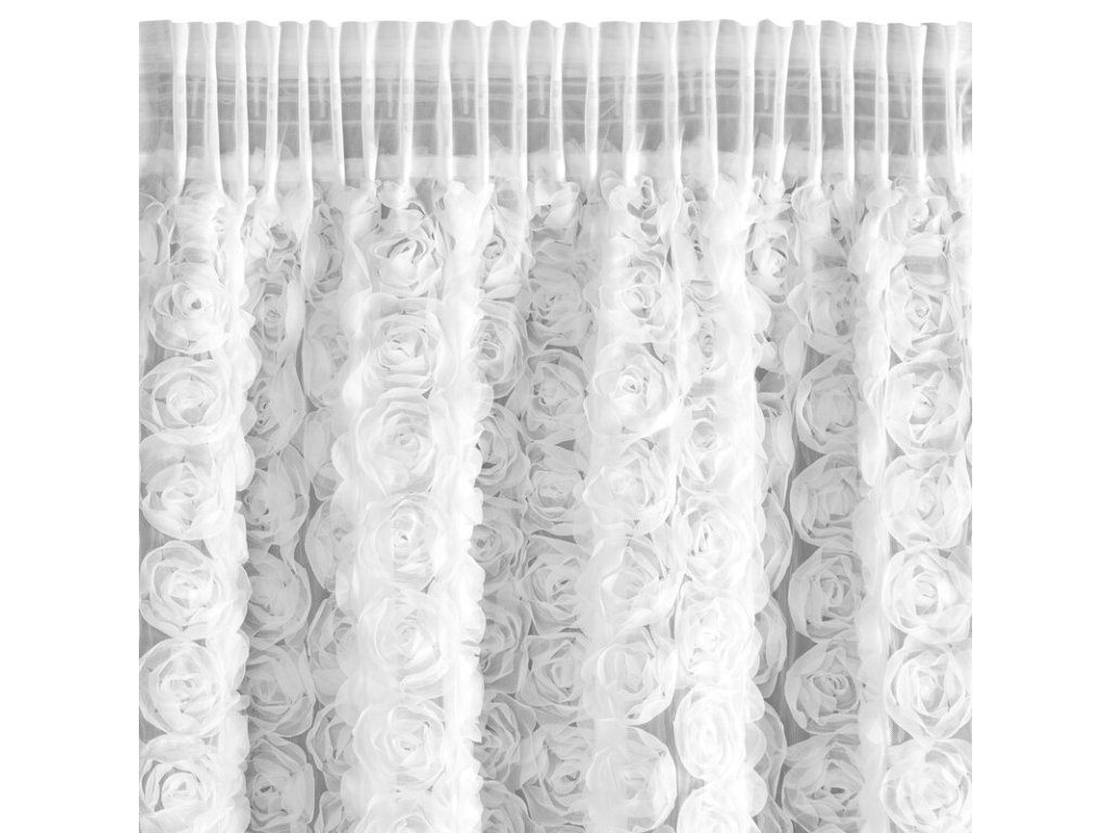 A puha tapintású szövetből készült dekoratív, háromdimenziós rózsák romantikus jelleget és a természet finom érintését kölcsönözik a függönynek. Minden részlet gondosan kidolgozott, így a függöny elegáns és esztétikus megjelenésű.