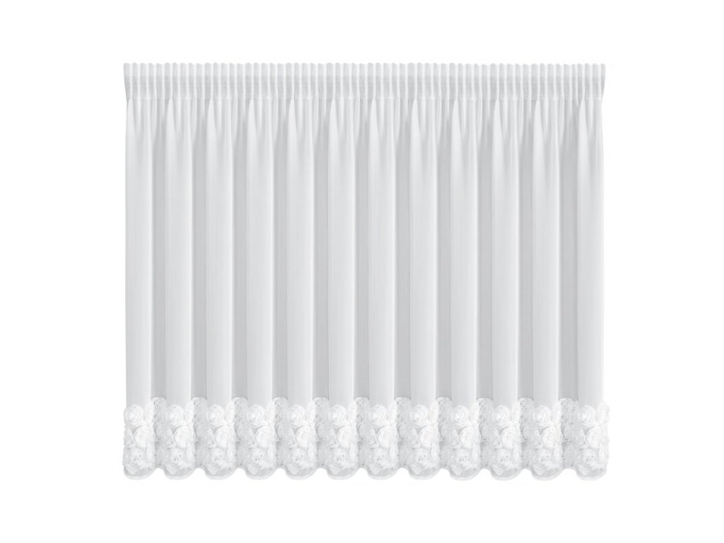 Készre varrt fehér függöny RÓZSÁK 8 db szalagon 400x160cm