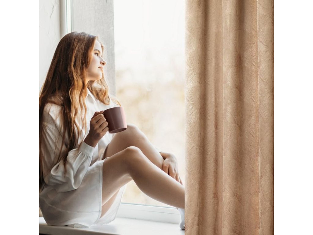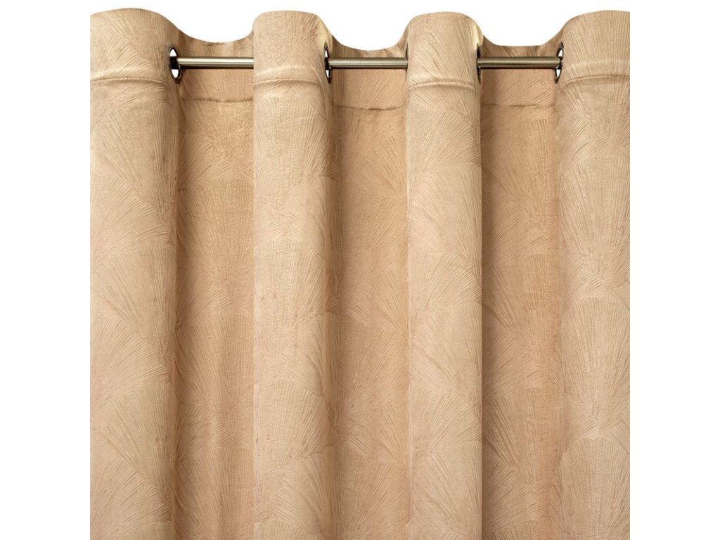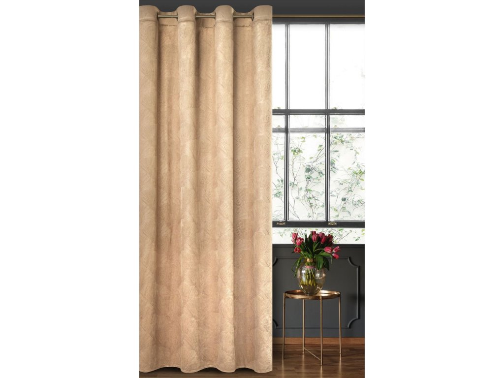 Vigyen luxust és kifinomult stílust otthonába a tekintélyes PIERRE CARDIN kollekció függönyével. Az elegáns ginkgo levél motívum rozéarany fólianyomatban finoman visszaveri a fényt, és bájos hatást kelt, amely azonnal magára vonzza a figyelmet.