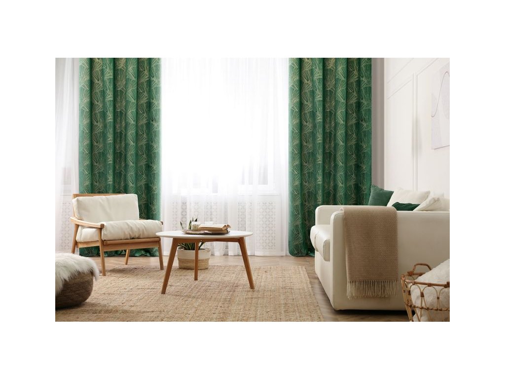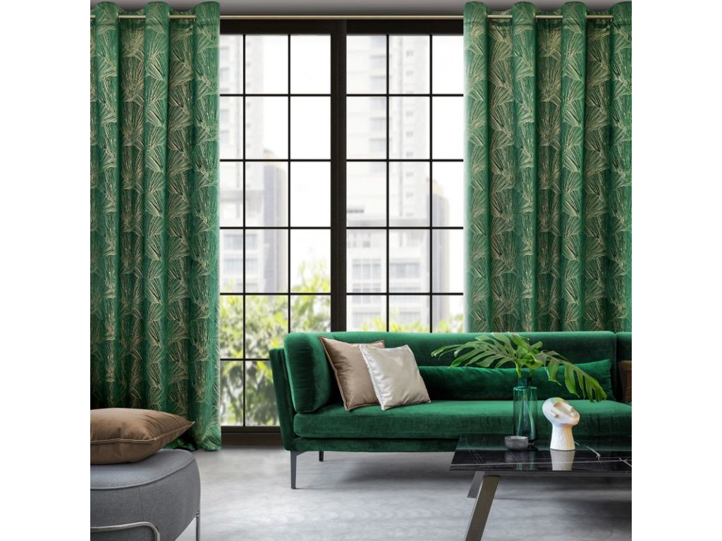 Vigyen eleganciát otthonába a tekintélyes PIERRE CARDIN kollekció függönyével. A szimmetrikus , pezsgőarany színű ginkgo levél motívummal díszített minta finom csillogása gyönyörűen kontrasztos a puha bársony háttérrel, kifinomult hatást keltve, amely azonnal magára vonzza a figyelmet.