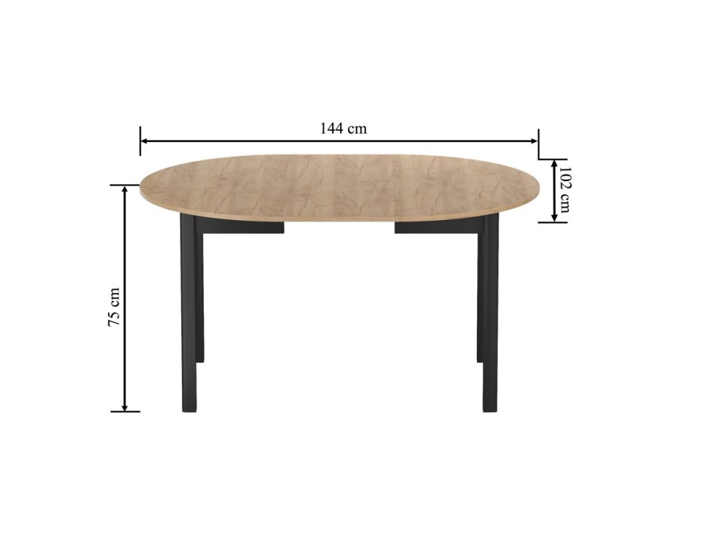 A praktikus összecsukó mechanizmusnak köszönhetően egy külön betétlap segítségével könnyedén növelhető a terület 102 cm-ről 144 cm-re. A laminált lapból készült, ABS élekkel ellátott, masszív szerkezet garantálja a mindennapi használattal szembeni ellenállást, míg a stabil MDF lábak kiváló stabilitást és hosszú élettartamot biztosítanak.