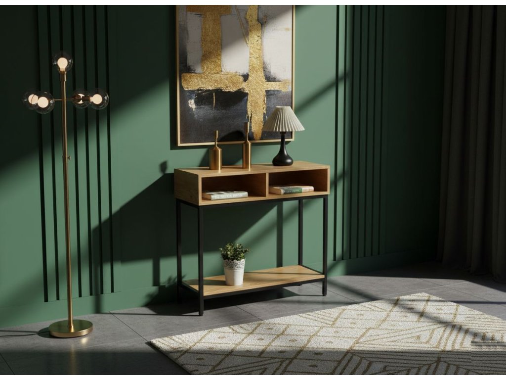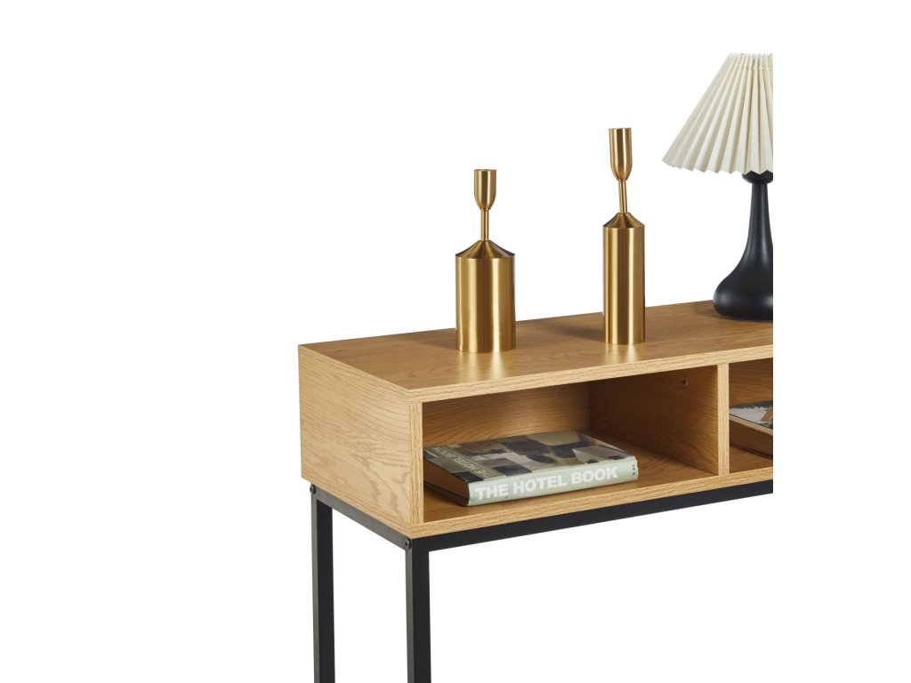 Egy minimalista konzol, amely azonnal rendszerezi a teret és stílust kölcsönöz. A natúr tölgyfa "Nordic Oak" konzol fekete fém kerettel elegáns, időtlen megjelenésű és könnyen kombinálható más bútorokkal. Keskeny, 30 cm- es mélységének köszönhetően ideális előszobába, folyosóra vagy kisebb helyiségekbe, ahol tárolóhelyet szeretnénk, de nem szeretnénk felesleges nagy méretet.