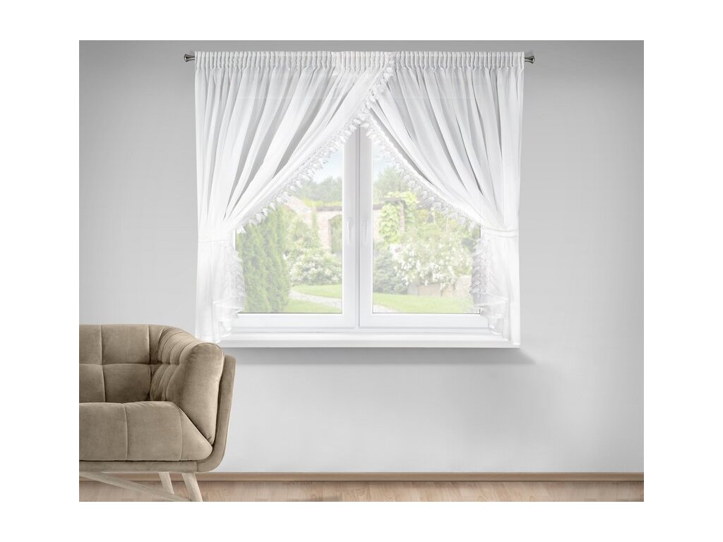 LORETA 1 kész függöny díszzsinórokkal – fehér, 400×160cm