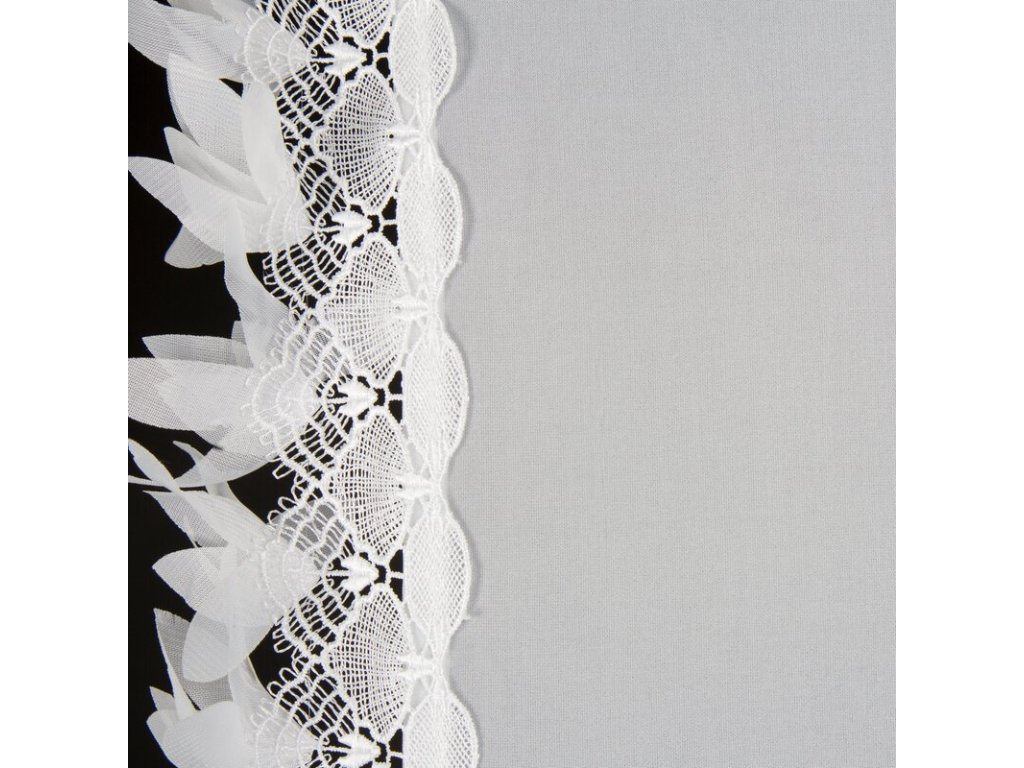 Ez a finom díszítő applikációval és díszzsinórokkal ellátott, készre varrt függöny elegáns megjelenésével és időtlen stílusával tűnik ki. A lágy fehér szín felderíti a szobát és optikailag megnöveli azt, frissé és harmonikussá téve azt.