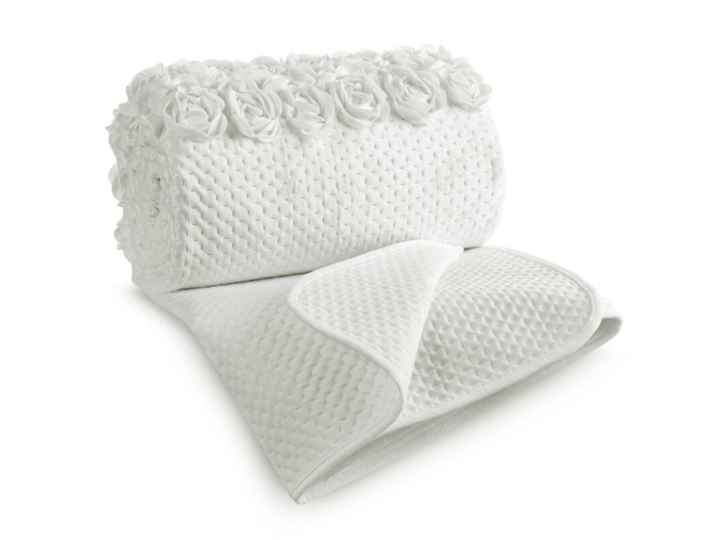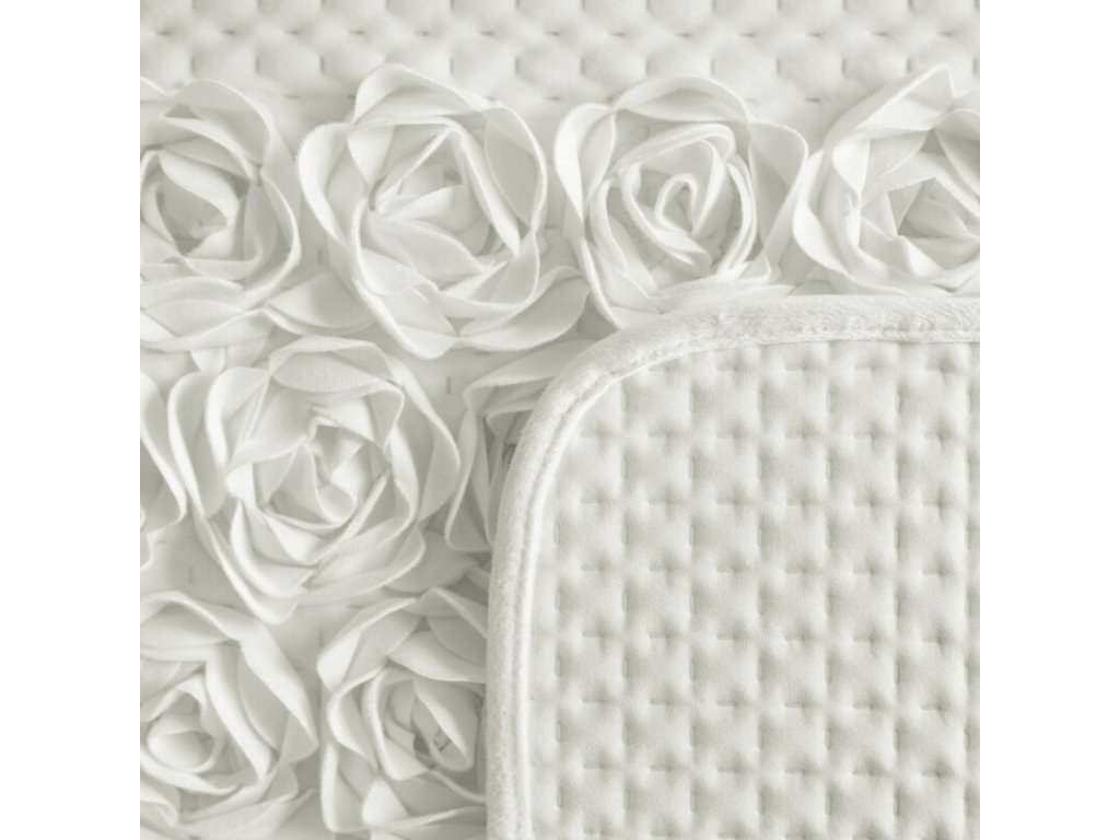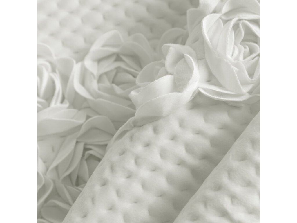 A legfeltűnőbb elem a díszes rózsa applikáció , amelyet finoman formázott szövetszirmokból készítettek. Ez a 3D-s hatás romantikus, exkluzív megjelenést kölcsönöz az ágytakarónak, és feltűnő ágydíszré teszi, amely minden tekintetet magára vonz.