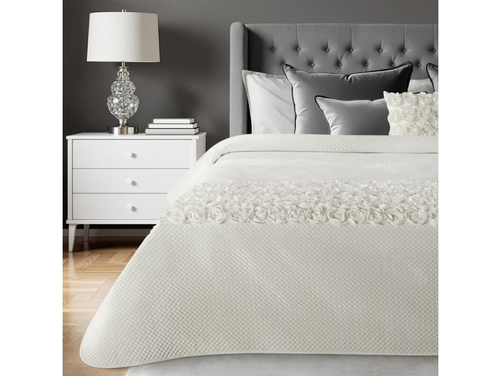 Luxus ágytakaró RÓZSA applikációval - krémszínű