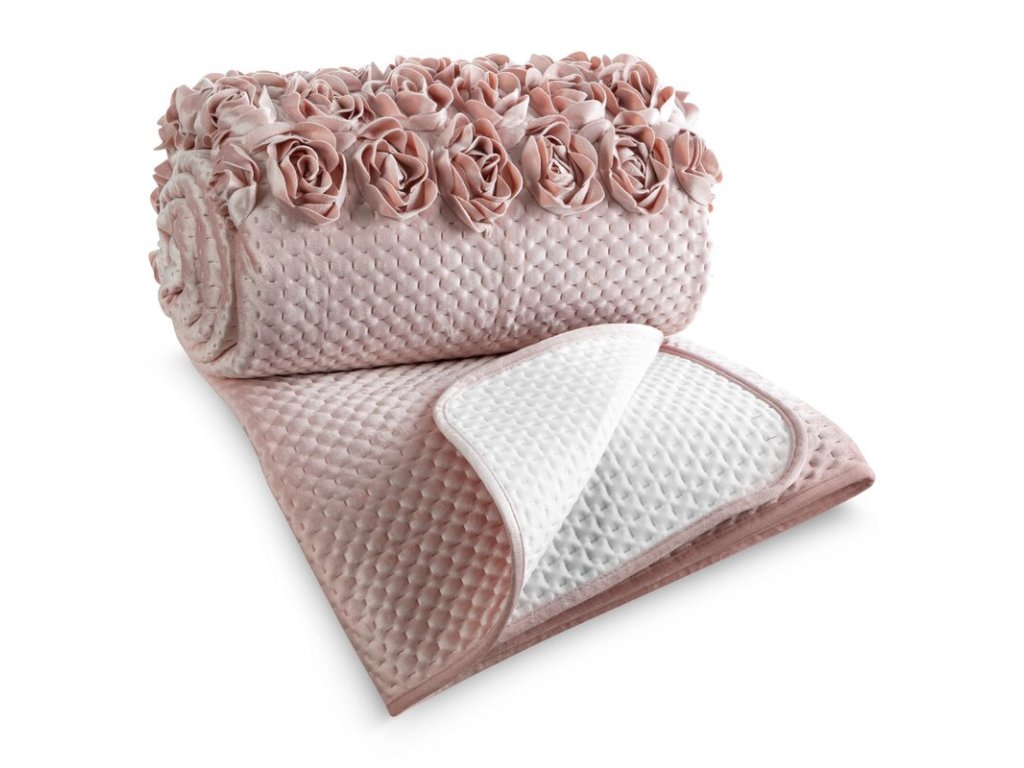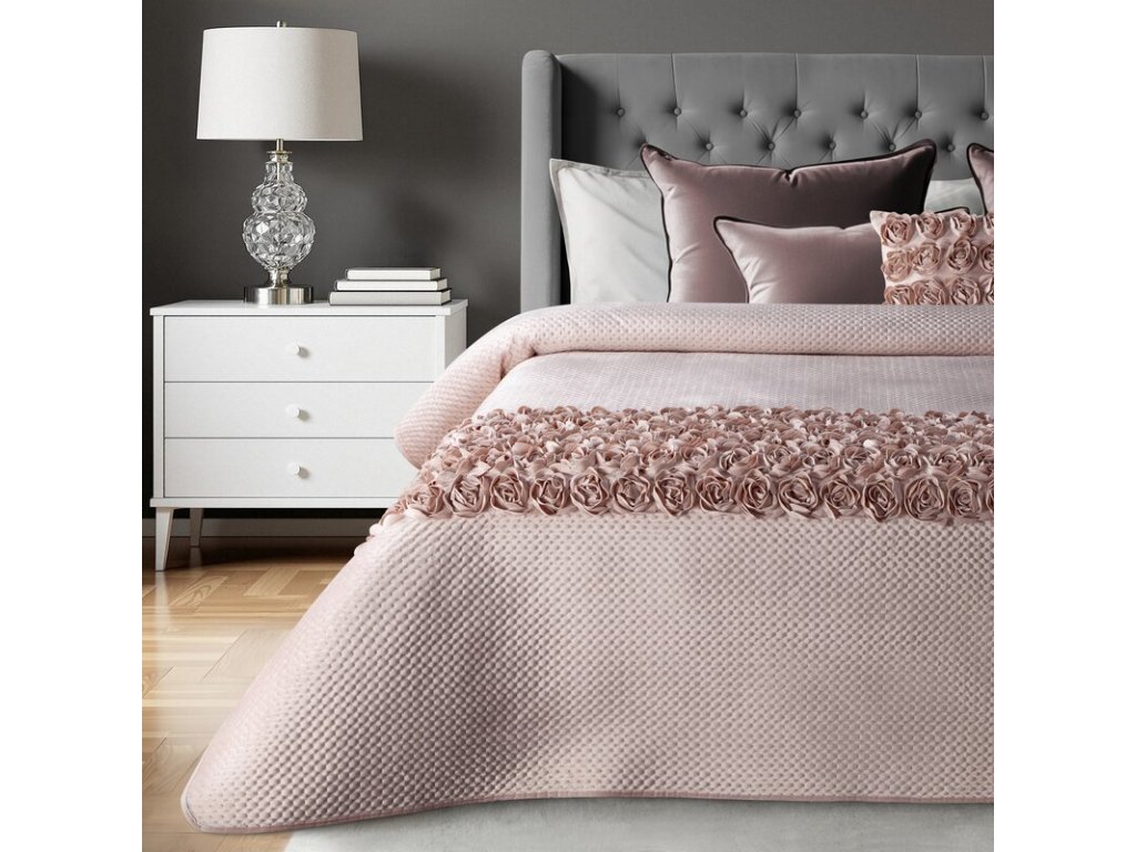 Luxus ágytakaró RÓZSA applikációval - púderrózsaszín